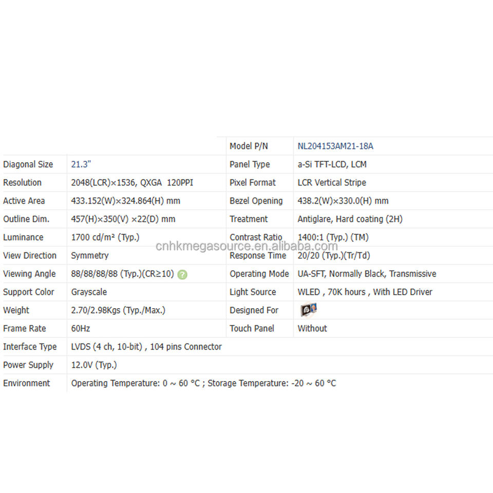Model Number:NL204153AM21-18A