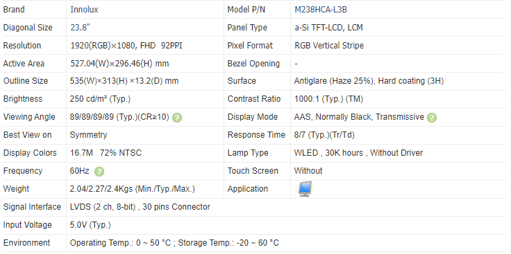 SélectionnerNuméro de Type: LM238WF2-SSK1