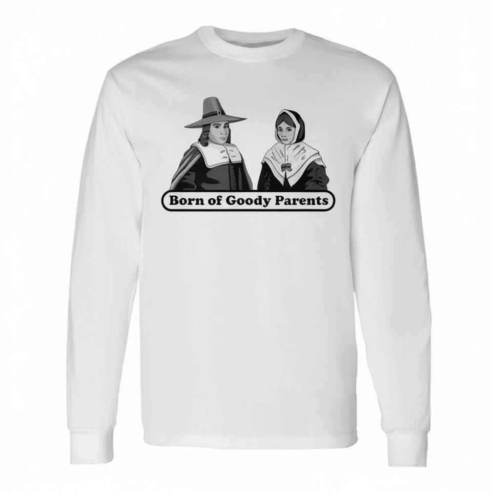 LDS Book Of Mormon Pilgrim Puritans T-shirt à manches longues Born Of Goody Parents pour adulte, unisexe, col rond, cadeau religieux pour l'église