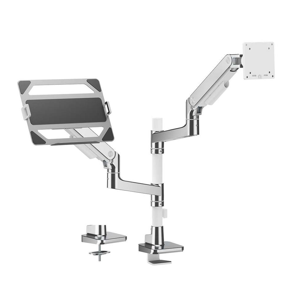 Bras de moniteur double premium LDT81-C024P-ML avec plateau pour ordinateur portable 2 en 1, support de bureau pour écran LCD en aluminium pour ordinateur portable, pour la maison et le bureau
