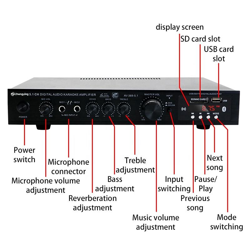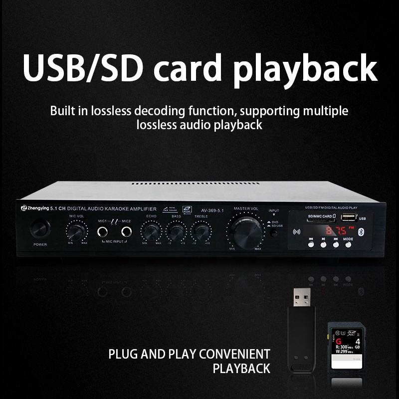 Amplificateur audio professionnel LDZS AV-369BT, mini amplificateur stéréo 5.1 en gros pour système de sonorisation de voiture, karaoké et home cinéma