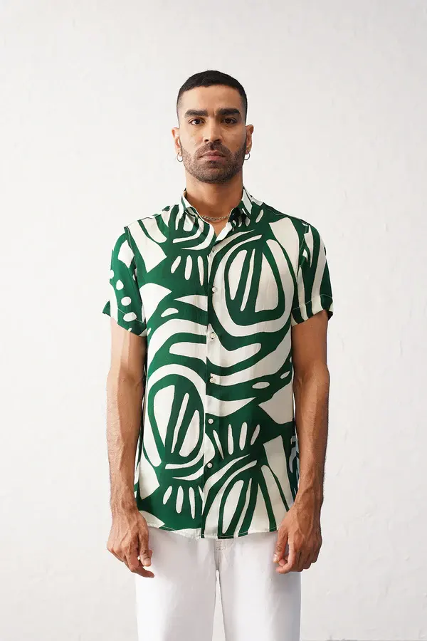 Chemise imprimée numérique LEAFY en tissu sergé confortable, anti-boulochage, séchage rapide, respirante, tailles XL et 5XL pour l'été