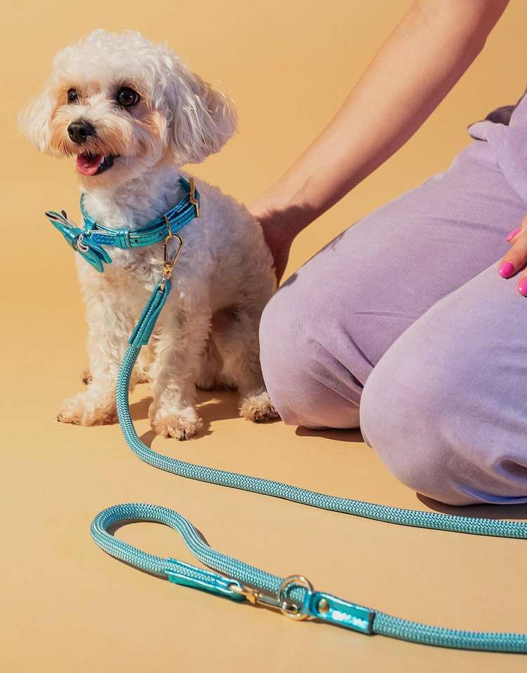 LEASH Blue Rope Chien ITALIEN-Accessoires pour animaux de compagnie fabriqués à la main Laisses pour chien en daim véritable