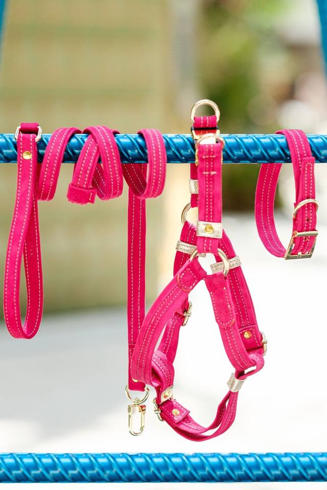 LEASH Chien ITALIEN rose-Accessoires pour animaux de compagnie fabriqués à la main Laisses pour chien en daim véritable