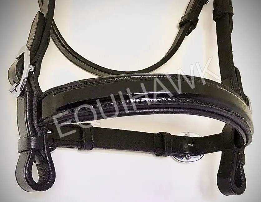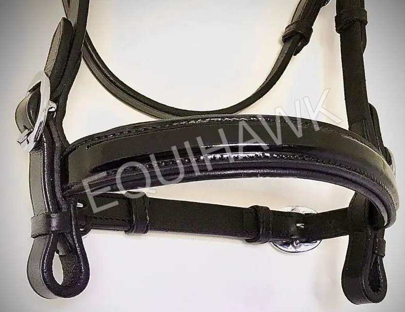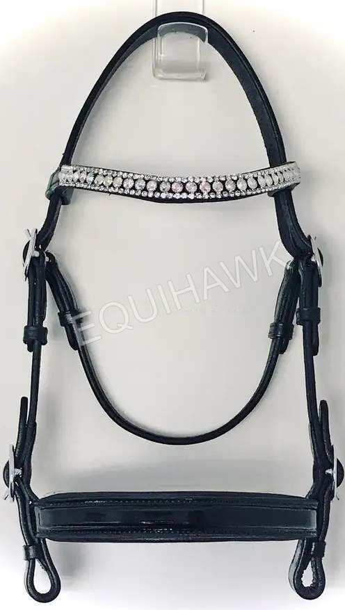 BRIDE À CHEVAL EN CUIR AVEC QUINCAILLERIE EN CRISTAL POLI ARGENT BANDES BRO ET NOSEBANDS BREVETÉS/BRIDE À CHEVAL EN CUIR DESIGN PERSONNALISÉ