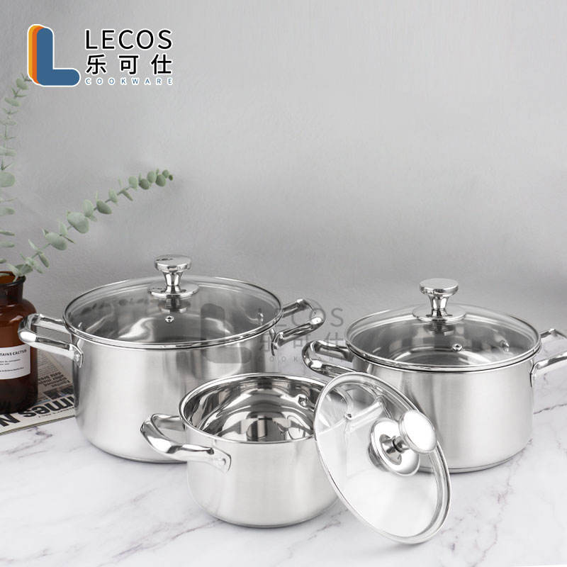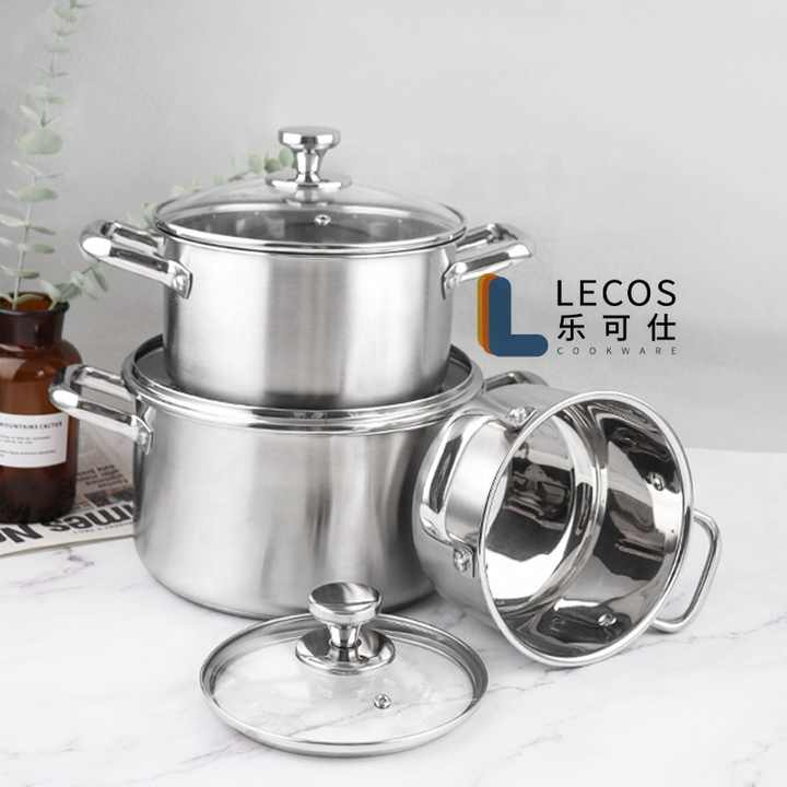 LECOS Articles de cuisine Vente en gros Lot de 6 casseroles à induction en acier inoxydable avec couvercles en verre