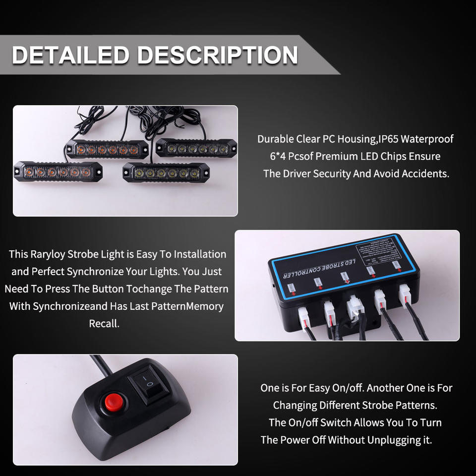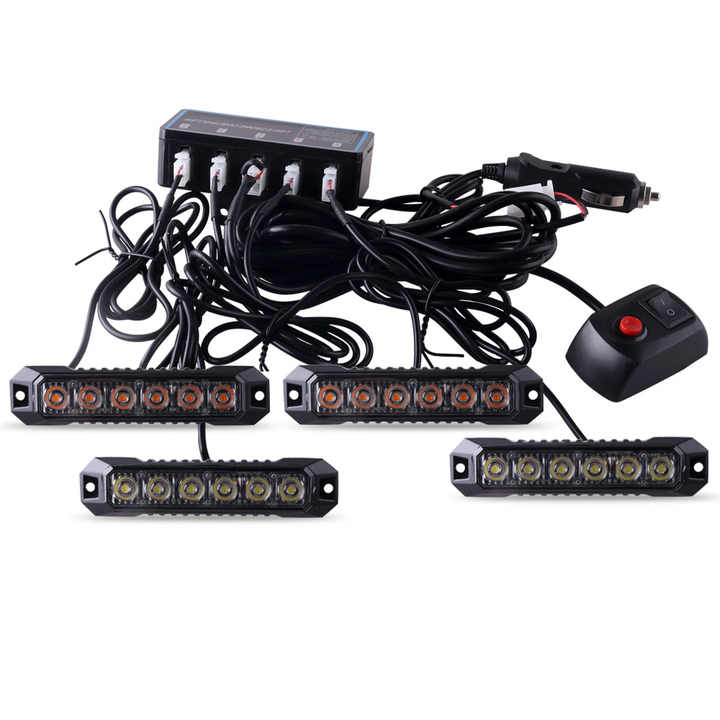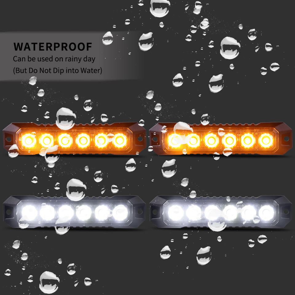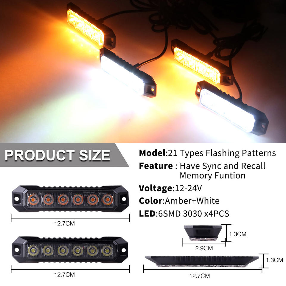LED-06k-4 Raryloy Feu de signalisation LED ambre/blanc 6 LED pour voiture/camion, avertissement d'urgence, clignotant stroboscopique de danger 6 LED
