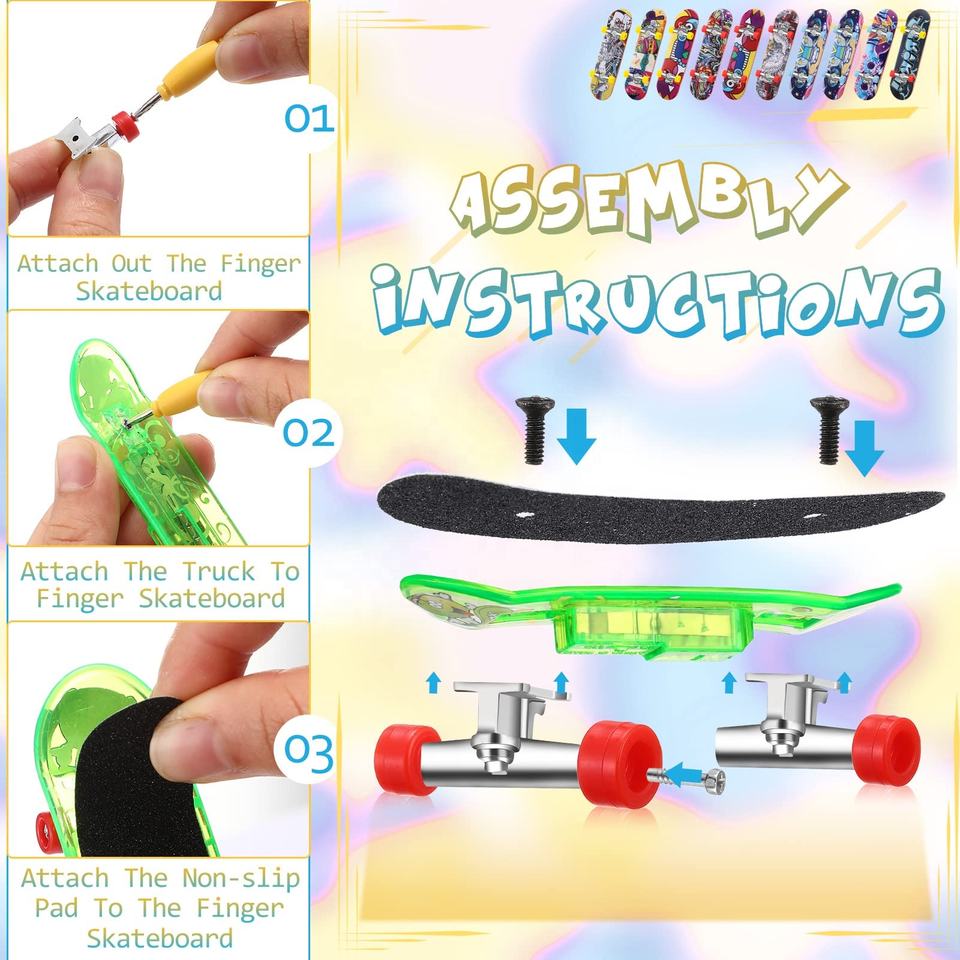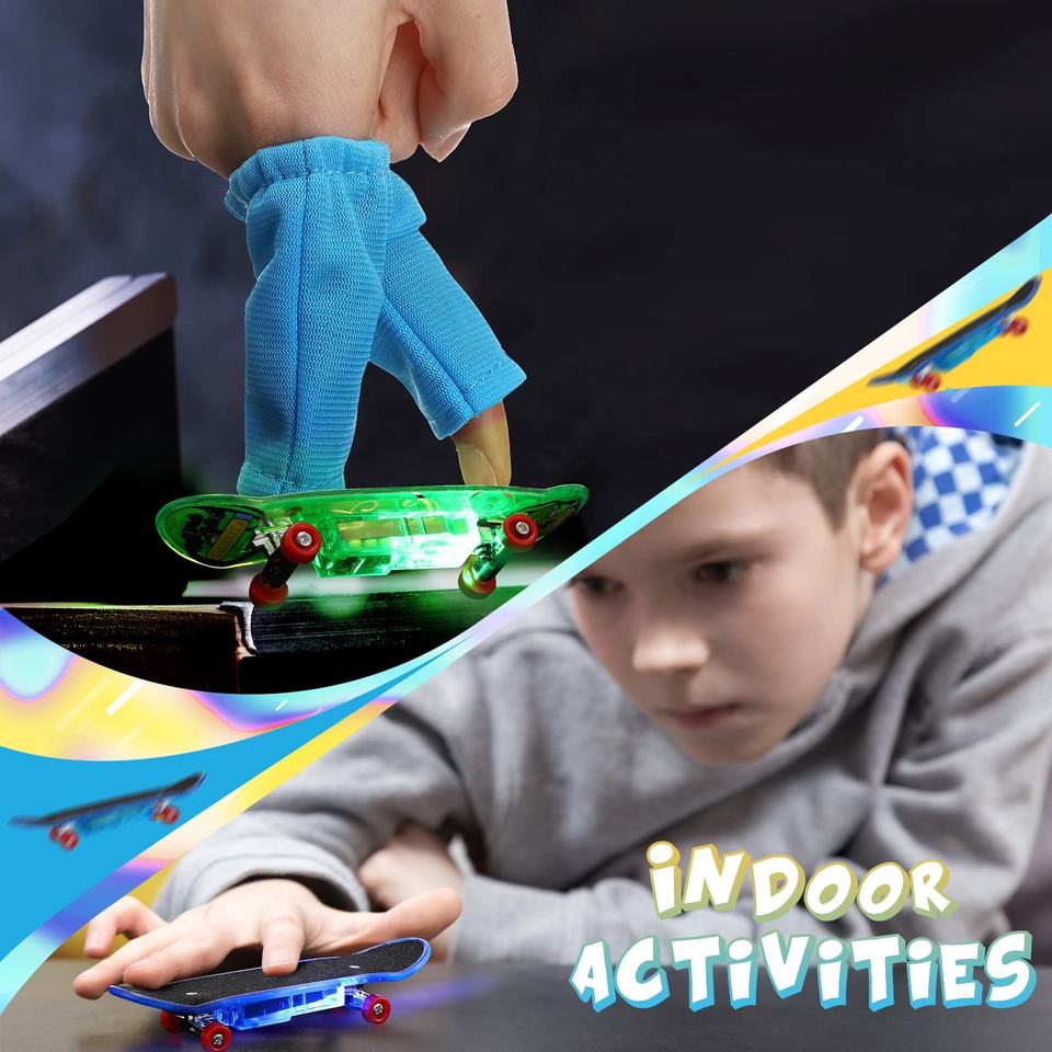 LED 18 pièces finger skate rampa, vente en gros finger skateboard gris 26mm, jouet finger skateboard avec rampe