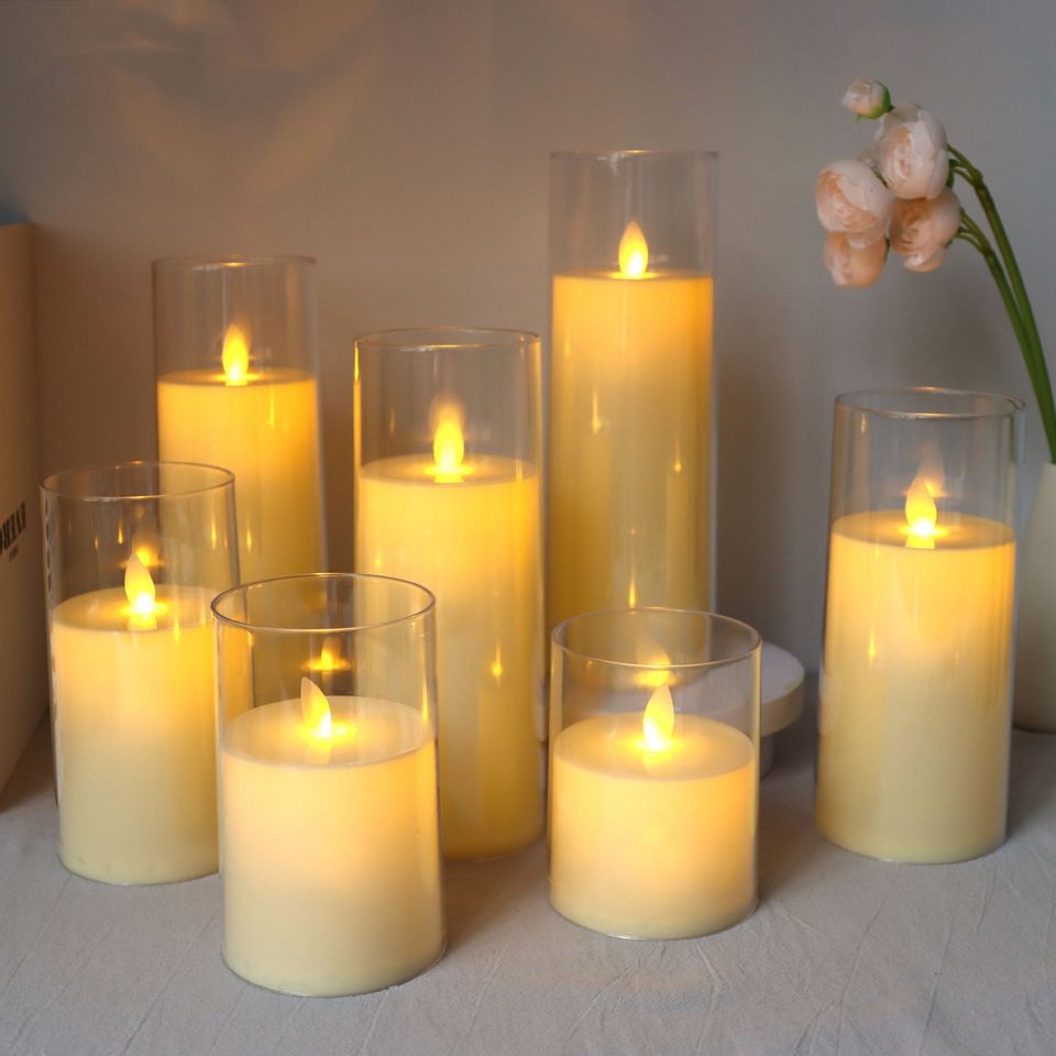 Lampe à bougie électronique en verre acrylique LED pour les décorations d'ambiance de fête de Noël et de fête transfrontalière