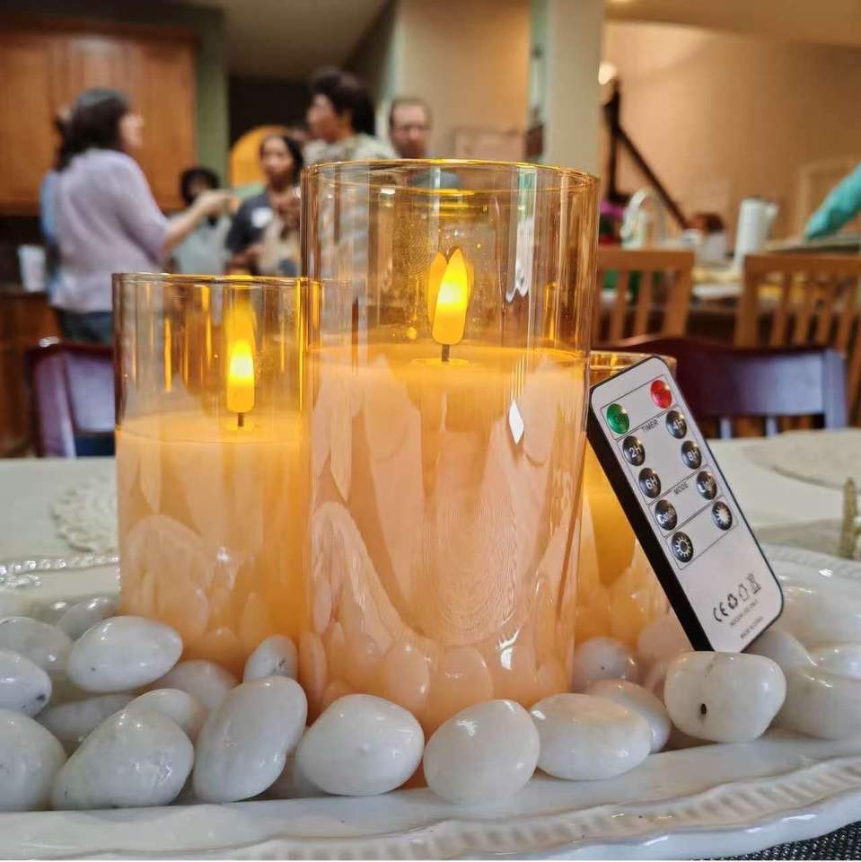 Bougie décorative électronique lumineuse simulée à tête oscillante en verre acrylique LED