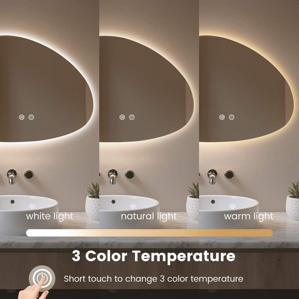Miroir de salle de bain LED avec lumières, miroir de salle de bain LED rétroéclairé, miroir anti-buée pour salle de bain, 3 couleurs et lumière variable