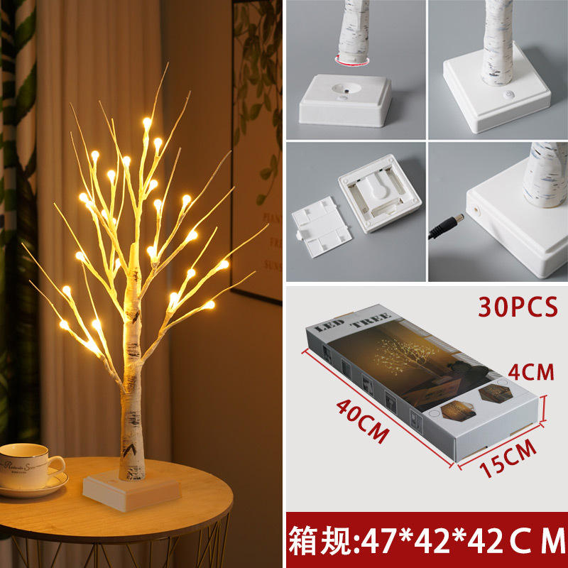 Lumière LED en forme de boule de bouleau, blanc chaud, pour décoration intérieure de Noël, fête, maison et éclairage de scène