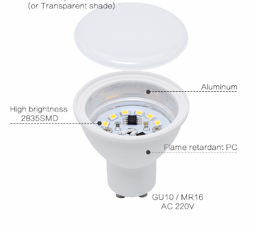 Ampoule LED, ampoule LED pour projecteur, MR16 GU5.3, éclairage intérieur de haute qualité, résidentiel, aluminium AC, certifié CE, durée de vie de 10 000 heures