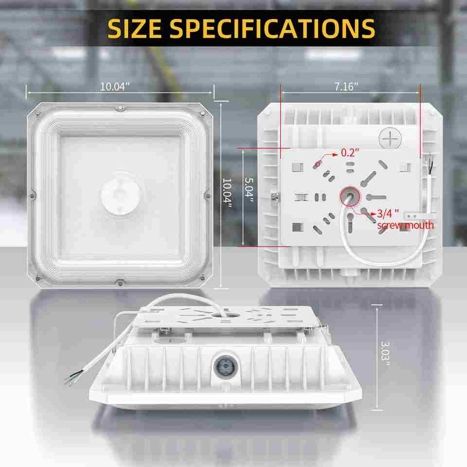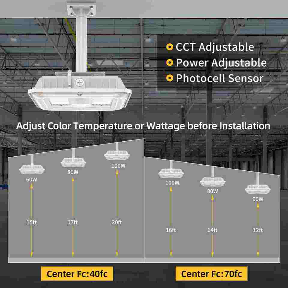 Luminaire LED pour auvent 100W/80W/60W CCT réglable 4.5/5/5.7K 100-277VAC avec cellule photoélectrique intégrée, luminaire extérieur commercial