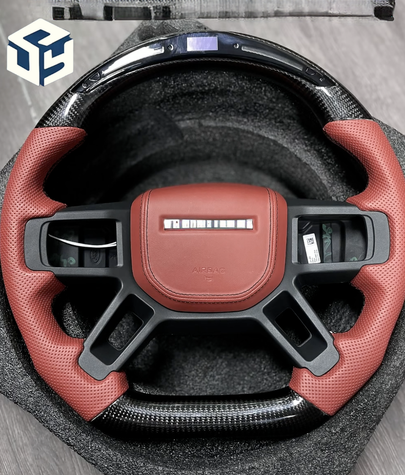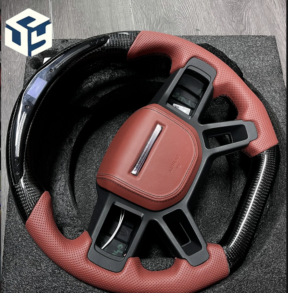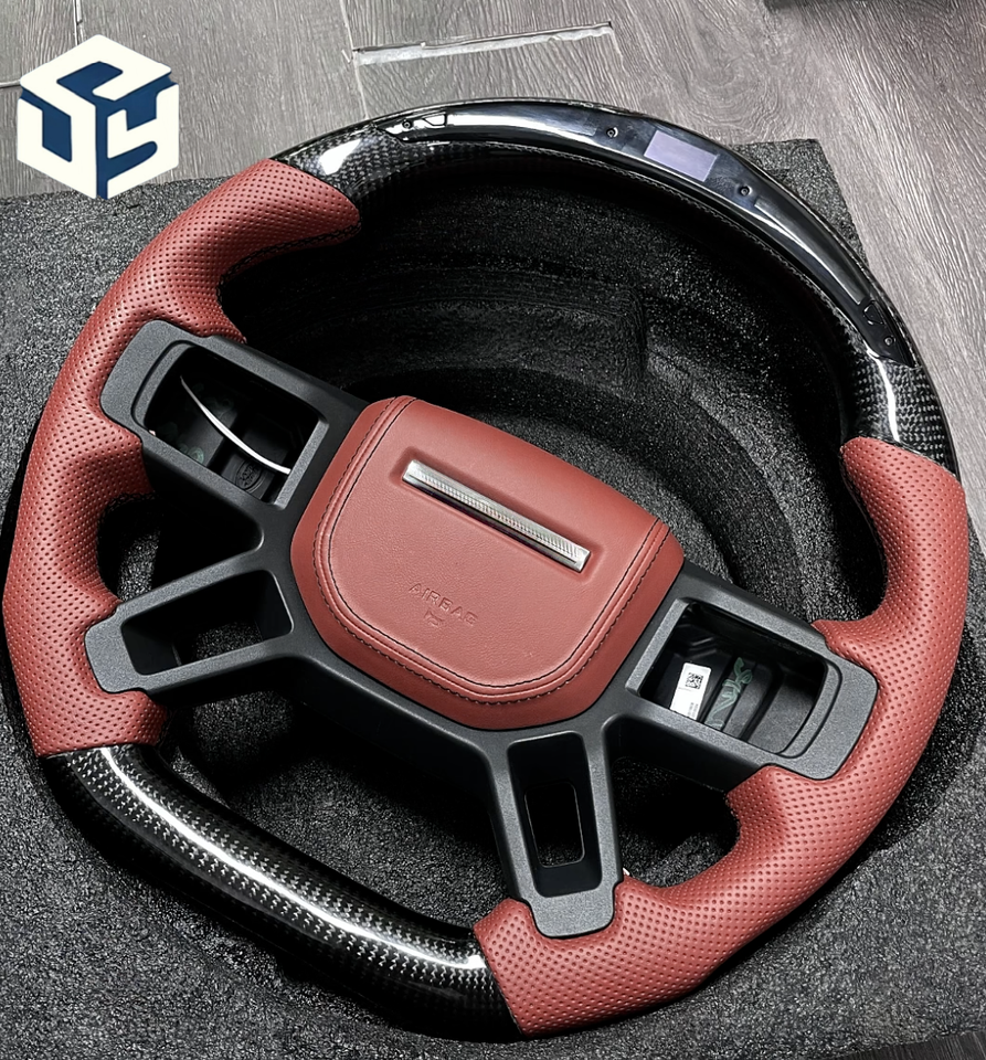 Volant en cuir perforé en fibre de carbone LED pour Land Rover Sport Range SVR L494 L405 Evoque Volant en fibre de carbone