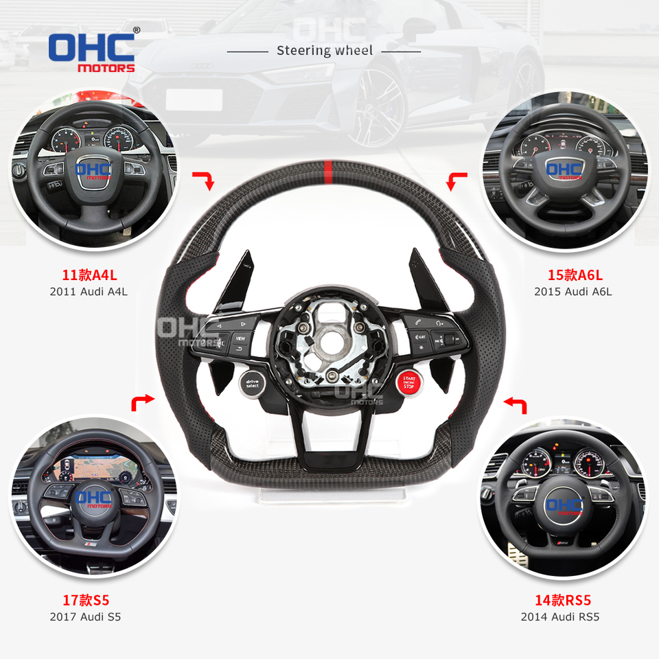 Volant LED en fibre de carbone A3 A4 A5 A6 A7 A8 2012 à 2020 Convertir l'ancien modèle de voiture pour la dernière Audi R8 A4 B8 A7 A6 C7