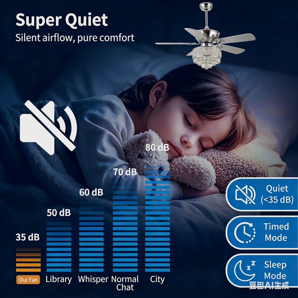 Ventilateur de plafond LED avec lumière, décoration de chambre, 3 températures de couleur, moteur BLDC, 5 pales, télécommande