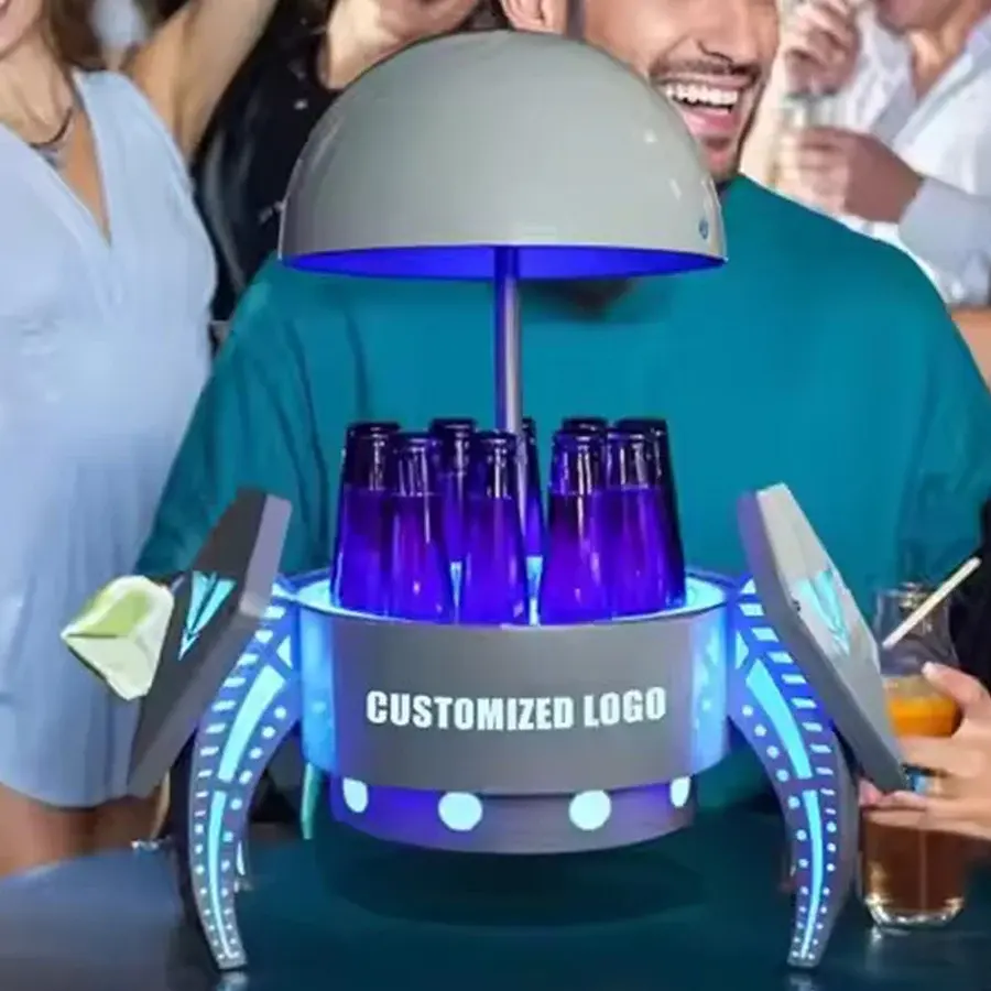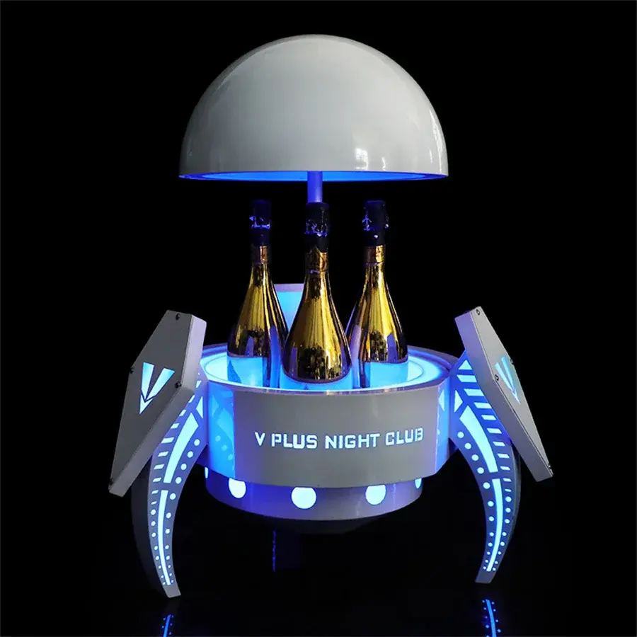 Glorificateur de bouteilles de champagne à LED Seau à glace à LED Space Capsule Chariot Refroidisseur de bouteilles Présentateur de service de bouteilles VIP