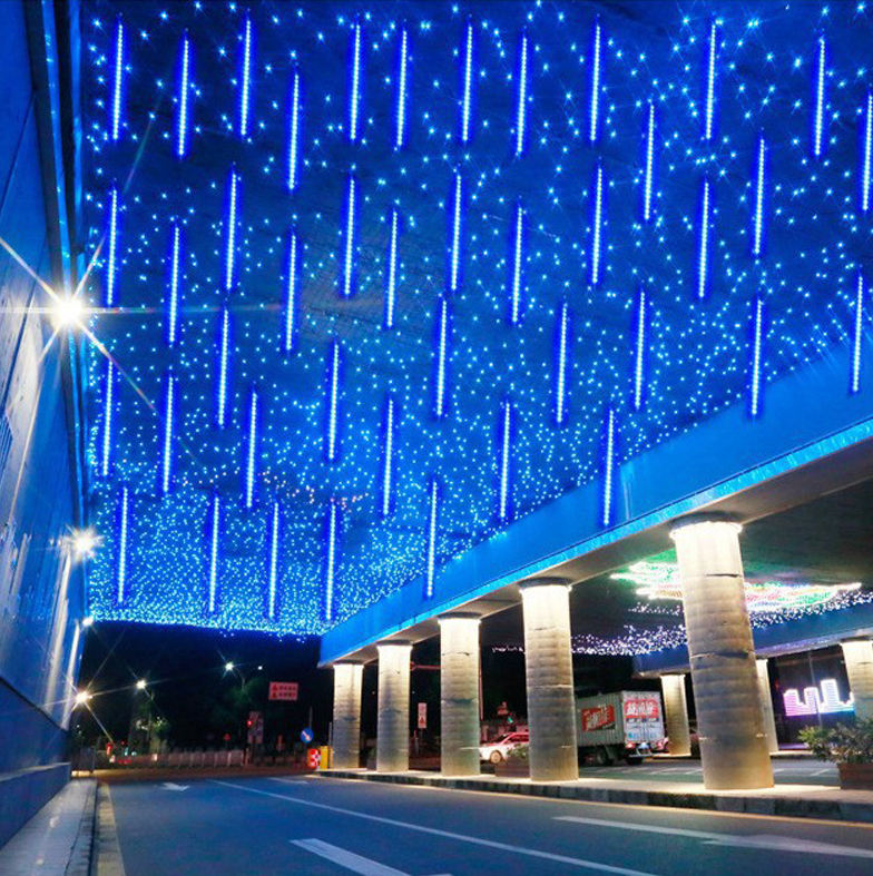Lumières LED colorées à effet d'eau qui coule, lumières de pluie de météores clignotantes, lumières suspendues pour arbres de jardin, parc, rue, Noël, imperméables