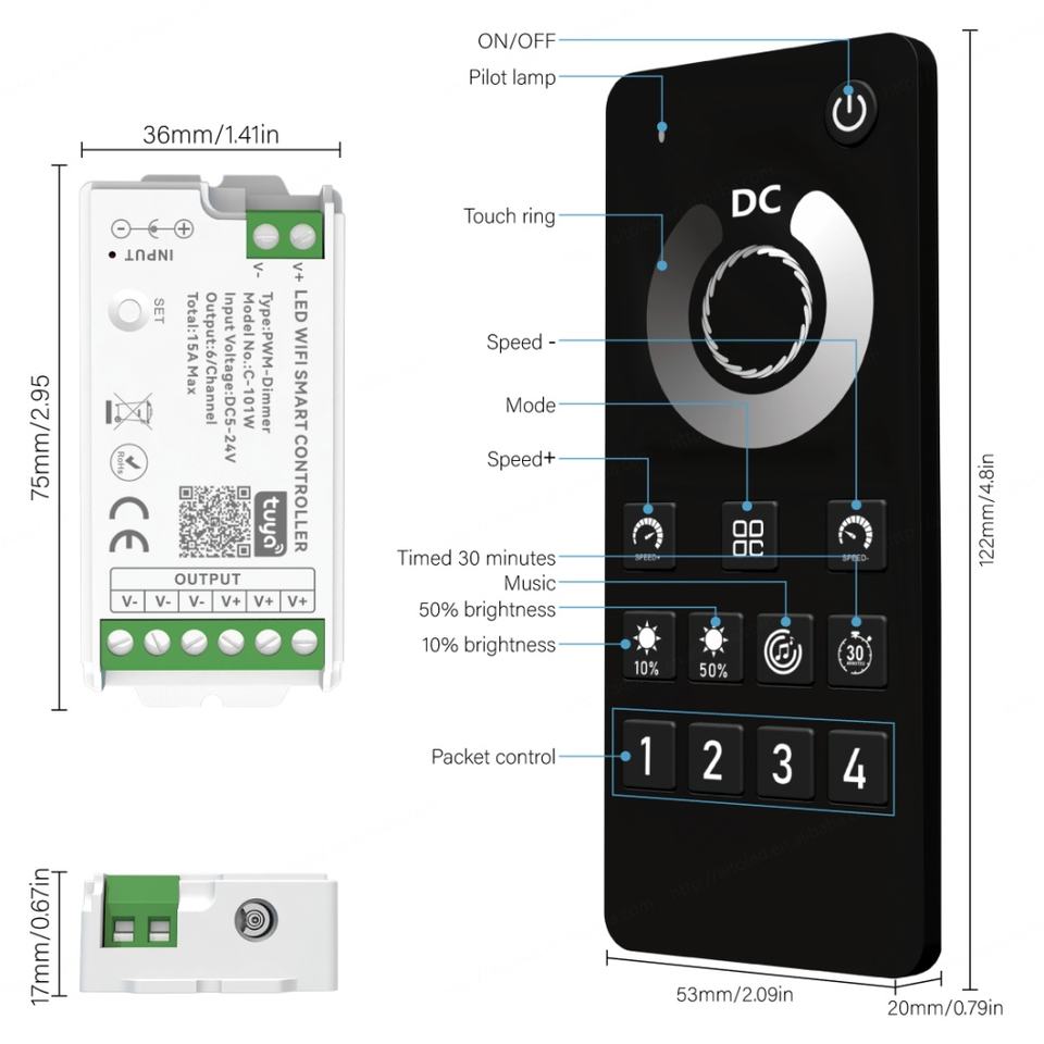 Contrôleur LED de bande lumineuse avec télécommande, fonction de contrôle de groupe, gradation de zone, contrôleur LED 720W de charge maximale
