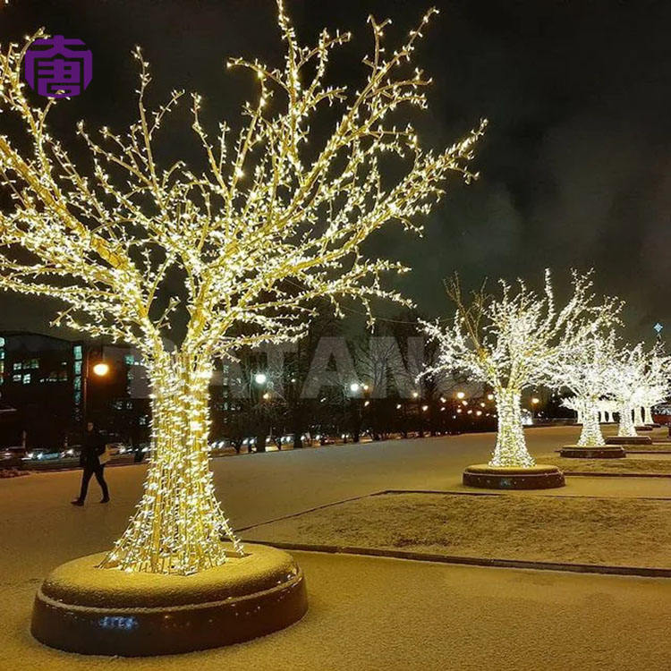 Arbre en cristal LED lumineux décoratif pour aménagement paysager et exposition extérieure lors de festivals, avec une lueur ambiante étincelante