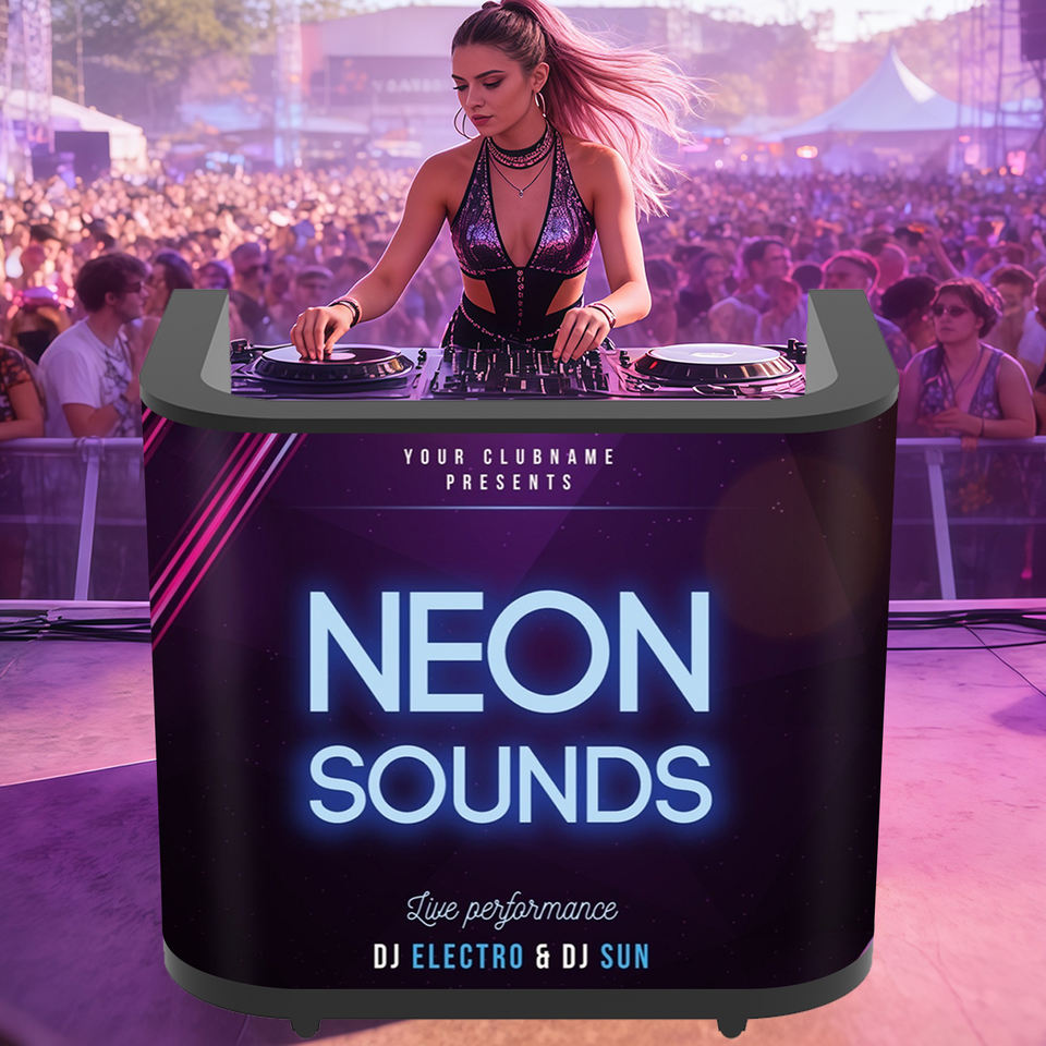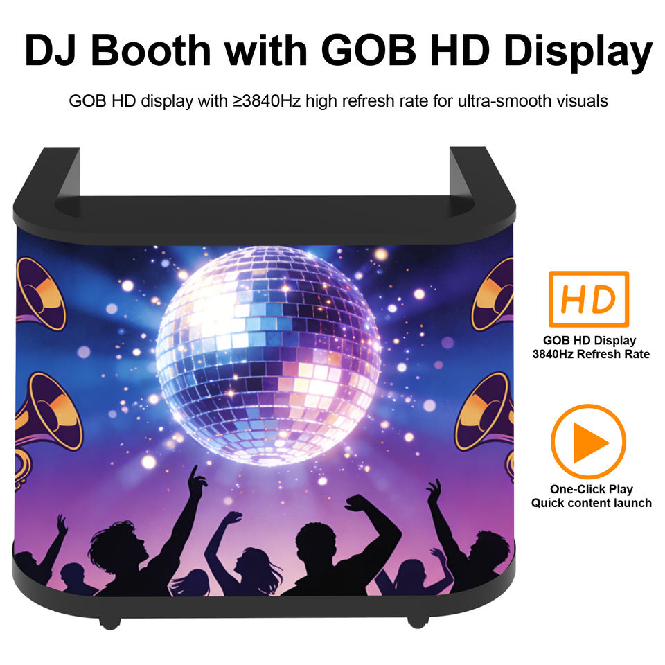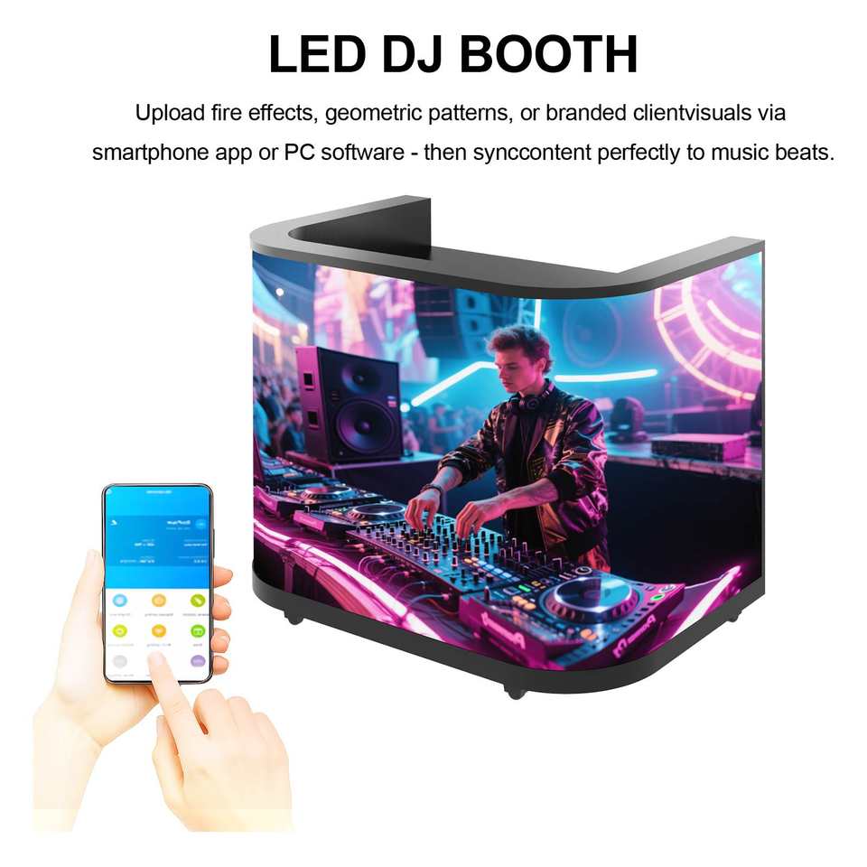 Cabine de DJ incurvée à LED - Cabine de DJ mobile sur pied | Support de console DJ LED RGB pliable, montage facile pour les DJ mobiles, spectacles en direct, bars