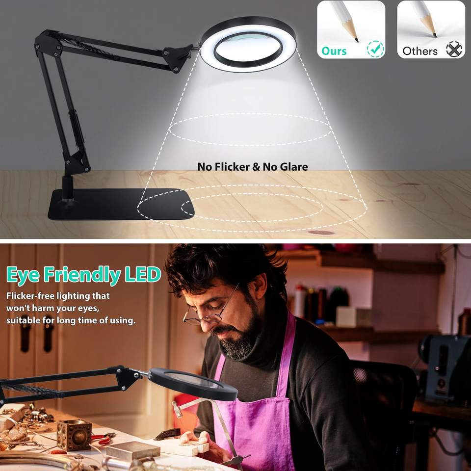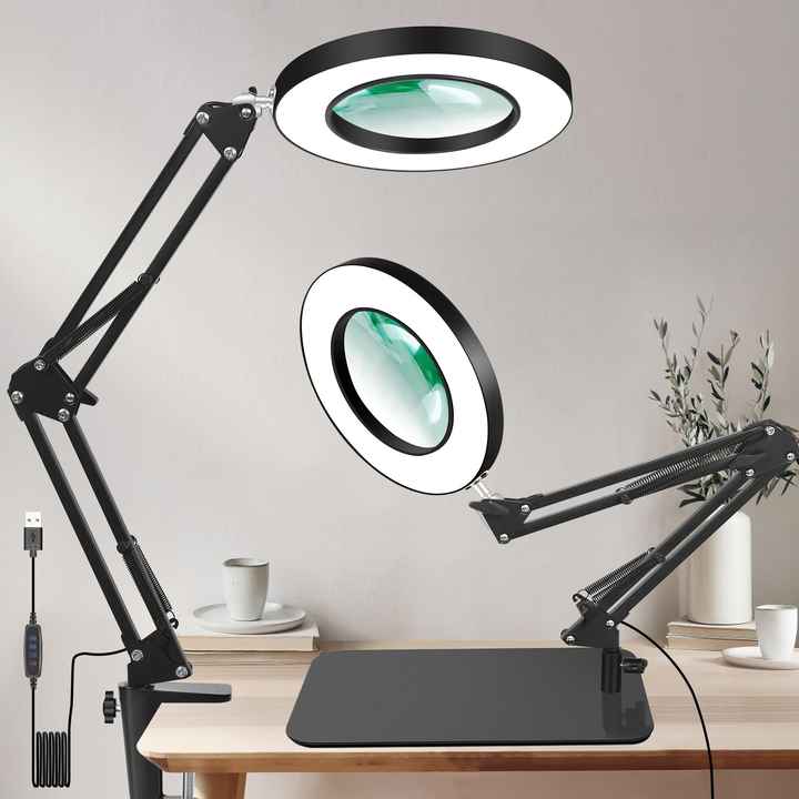 Mots-clés du produit:Lampe de bureau à loupe LED, lampe de travail 10X, lampe d'établi à base lourde