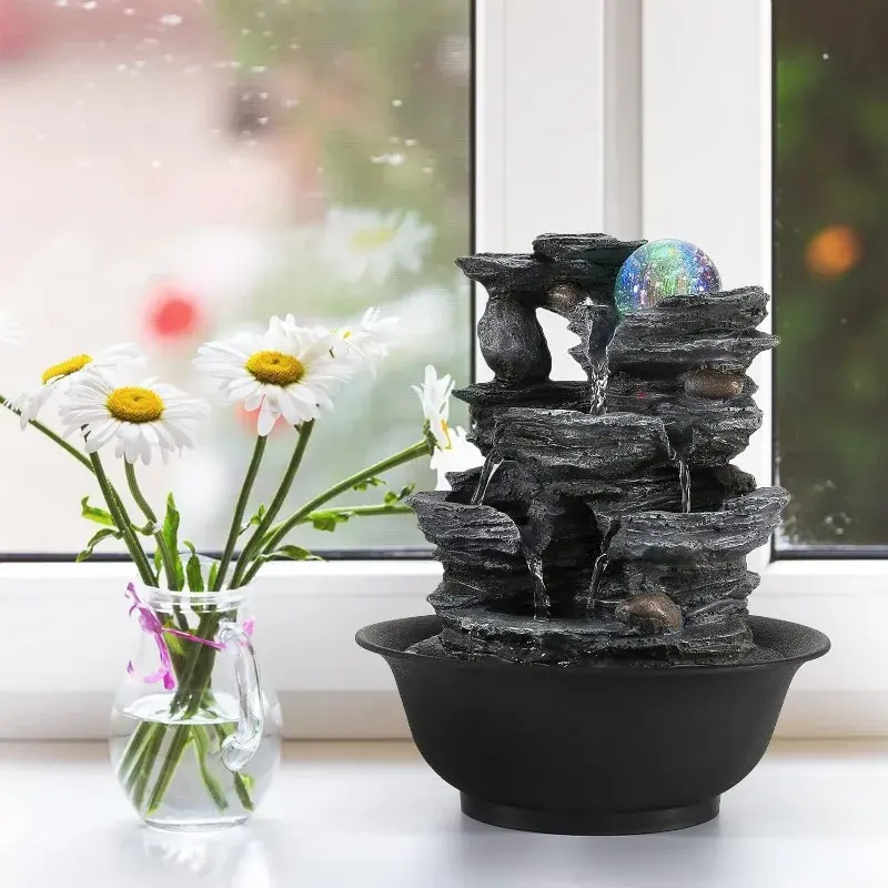 Fontaine d'eau de bureau LED avec cascade apaisante - Lumières changeantes de couleur Fontaine en résine pour la décoration moderne de la maison et cadeau zen