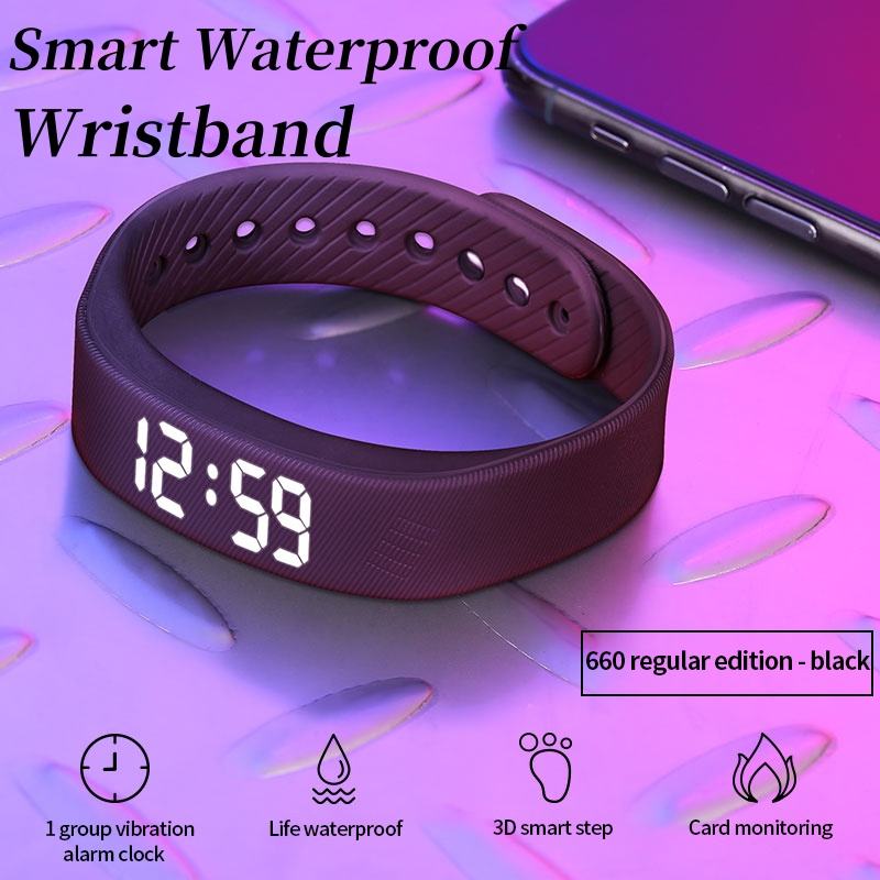 Montre-bracelet numérique LED étanche avec fonction snooze, podomètre intégré et bracelet de fitness réglable