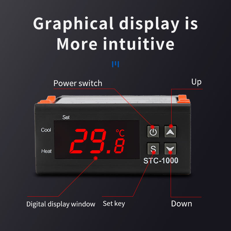 Thermostat numérique LED STC-1000, régulateur de température, relais de chauffage et de refroidissement pour incubateur, AC 110-220V