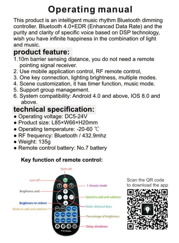 Nom du produit:Contrôleur LED musical avec application et télécommande RF