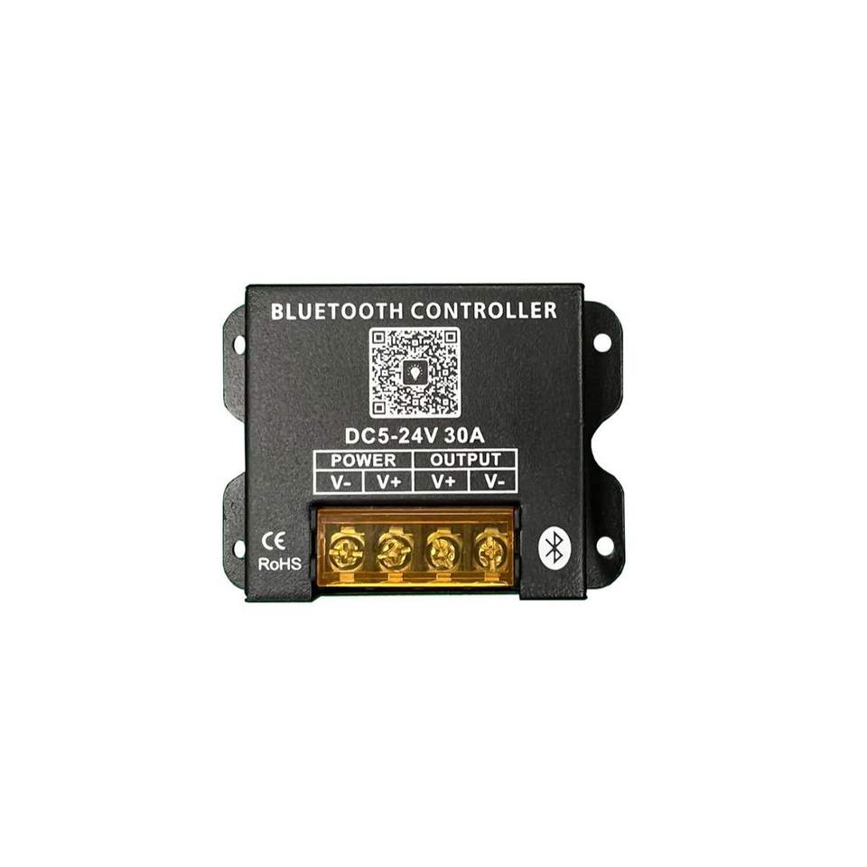 Contrôleur de bande LED 30A à coque en fer, 1 canal, couleur unique, avec variateur de lumière LED, minuterie, application BT, fonction Trick Light et télécommande RF 25 touches pour enseignes LED