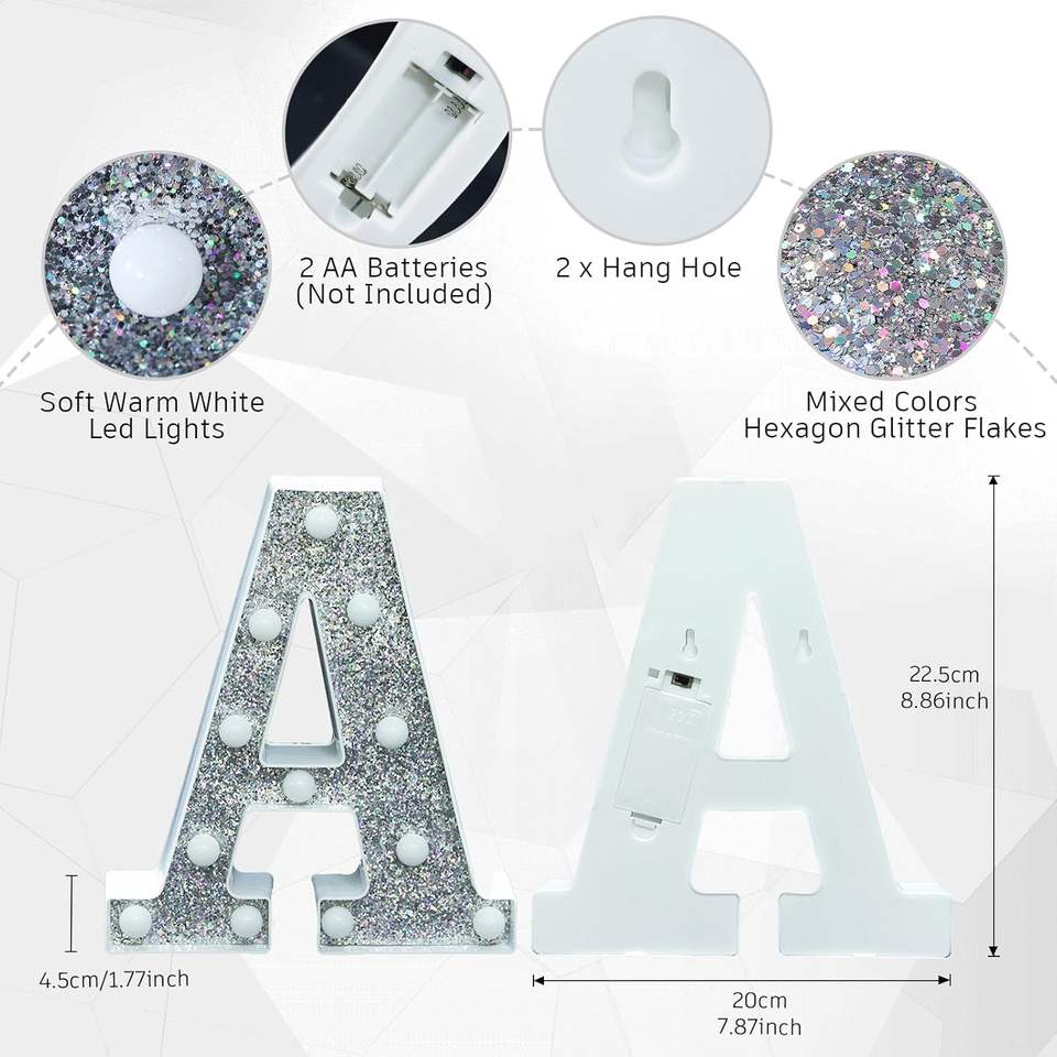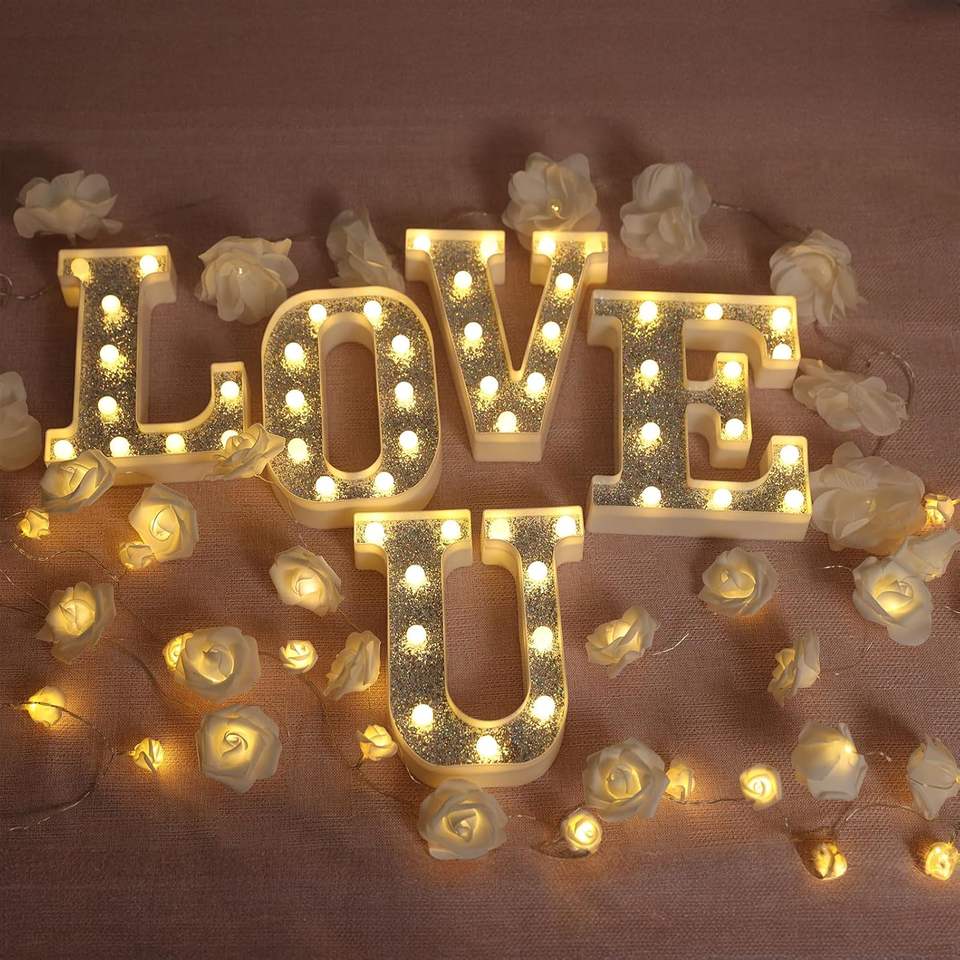 Affichage LED Lettres lumineuses Paillettes Décorations de table Prom Event Engagement Party Decor avec Alphabet Number Lighted