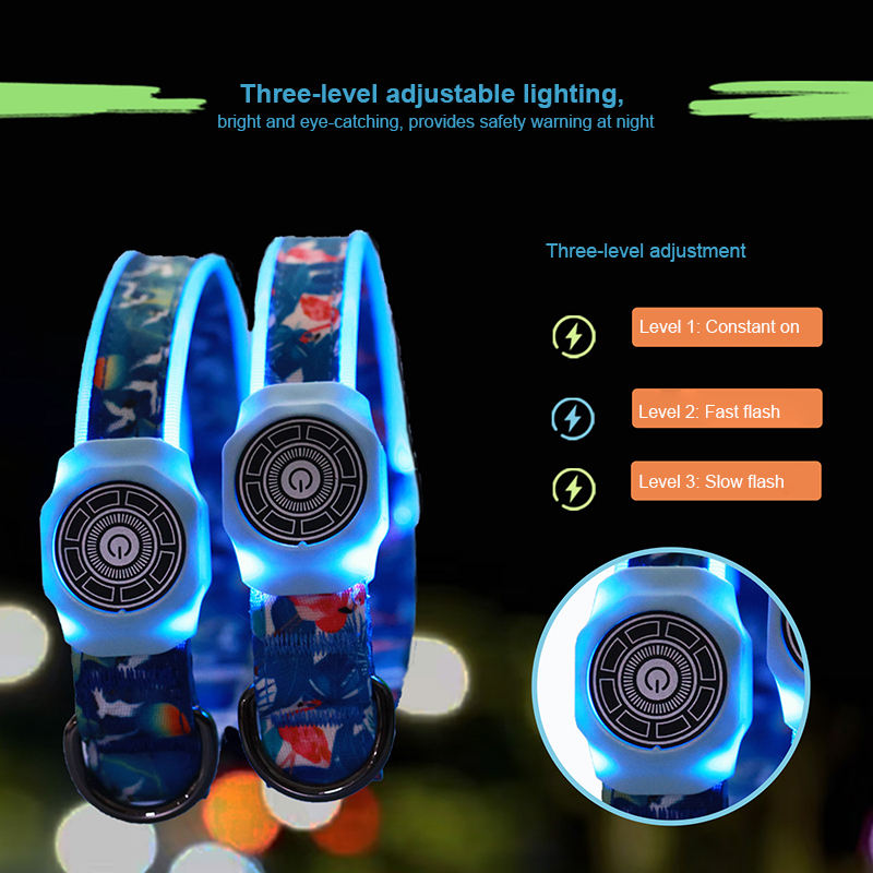 Collier LED de luxe pour chien, rubans, rechargeable par USB, haute visibilité, lumineux, collier lumineux pour la promenade nocturne des animaux, résistant aux intempéries