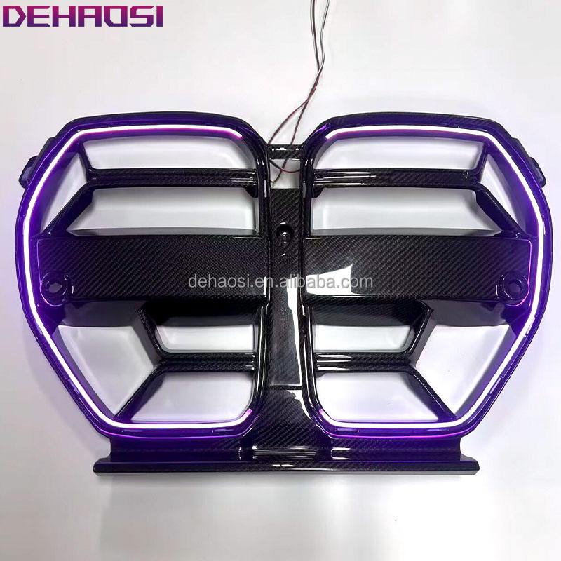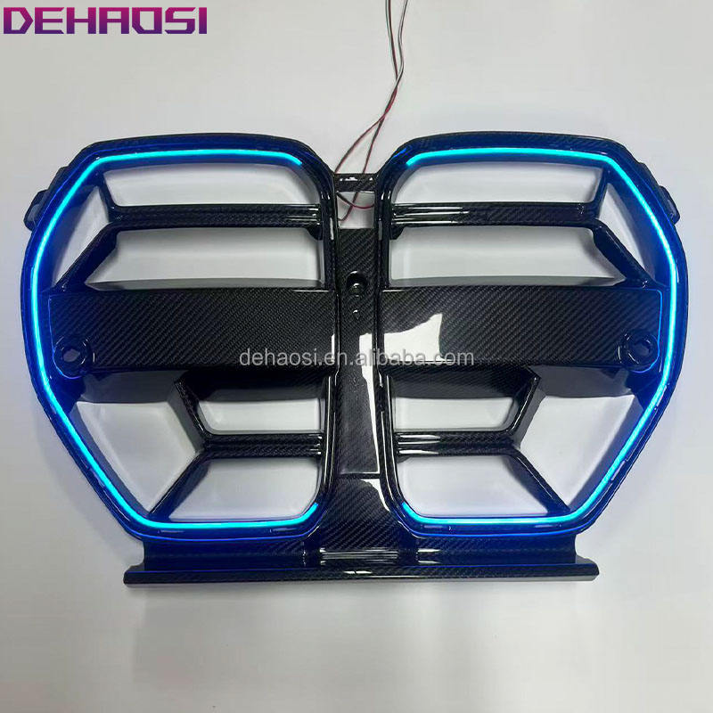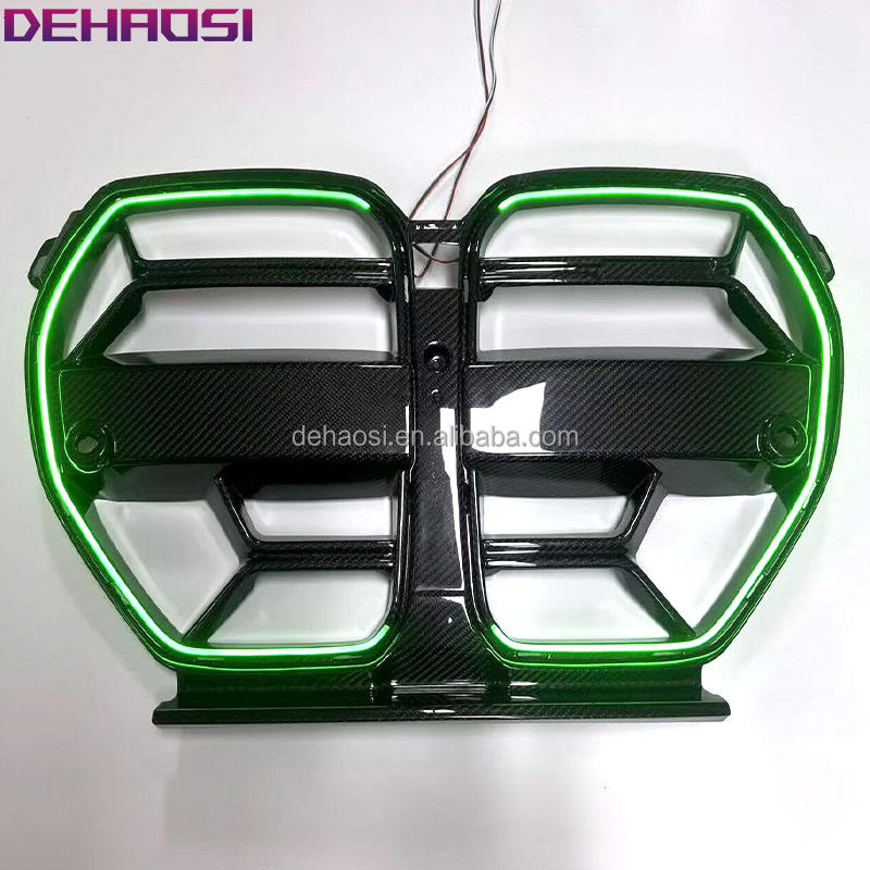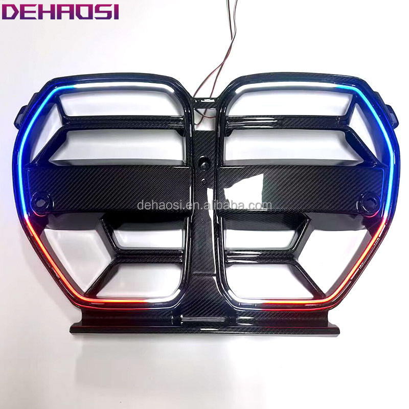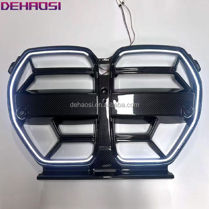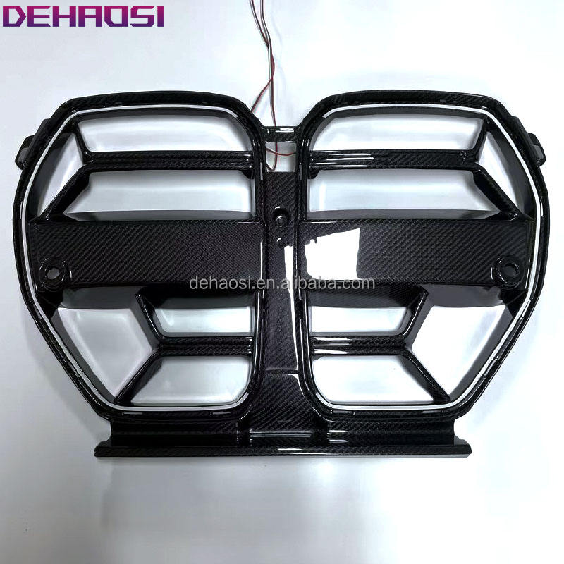 Grilles de pare-chocs avant en fibre de carbone sèche LED style CSL pour BMW G80 G81 M3 G82 G83 M4 2020-2025, grille de capot de course, garniture d'aération ACC