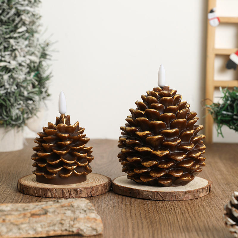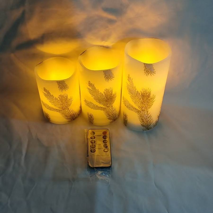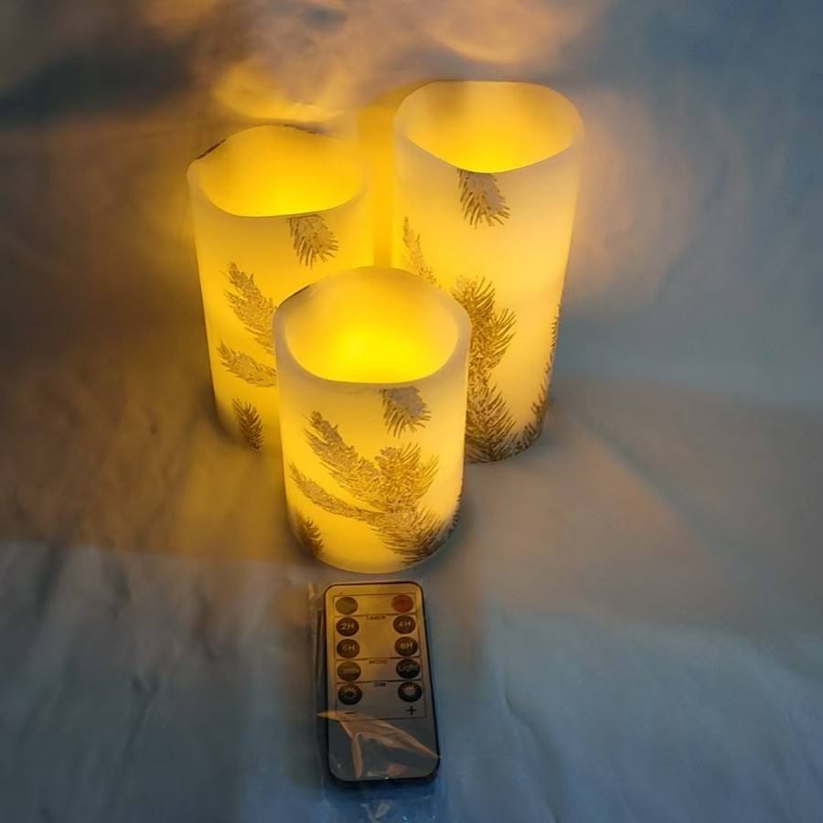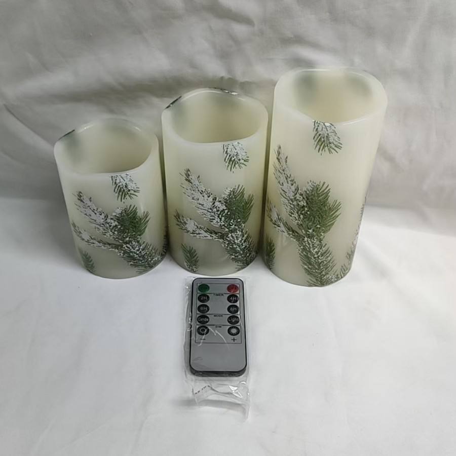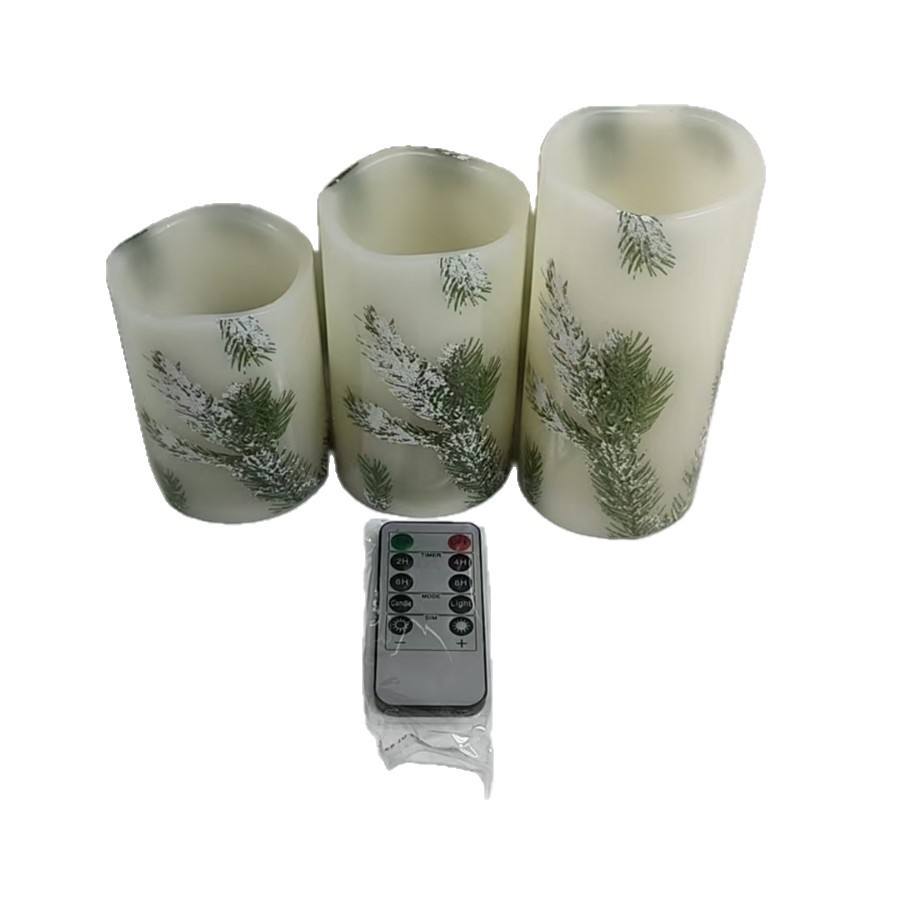 Bougie électronique à LED en cire de paraffine avec motif de sapin de Noël Télécommande de décoration à flamme clignotante pour les fêtes de fin d'année