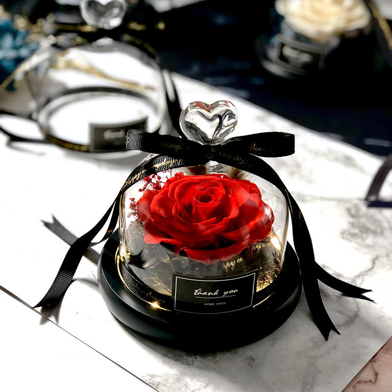 Couvercle en verre à LED Roses éternelles Cadeaux d'anniversaire de mariage pour femme Cadeau de Saint-Valentin enveloppé dans un ruban avec fleur éternelle