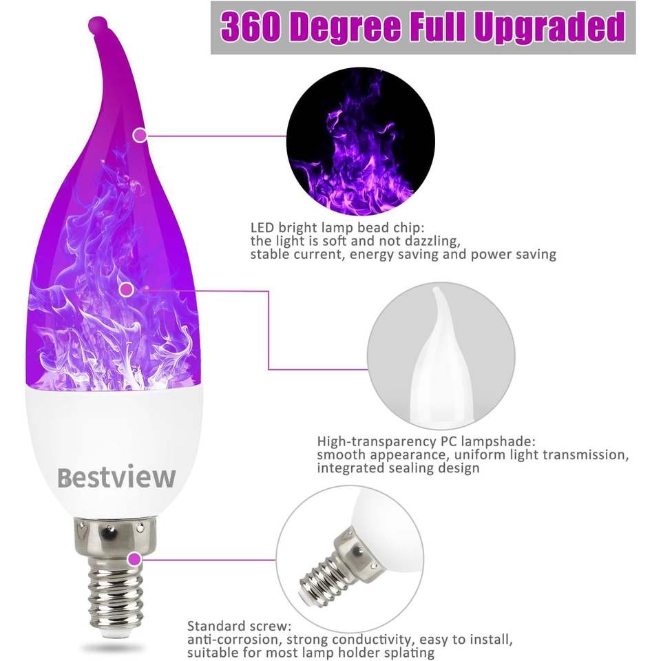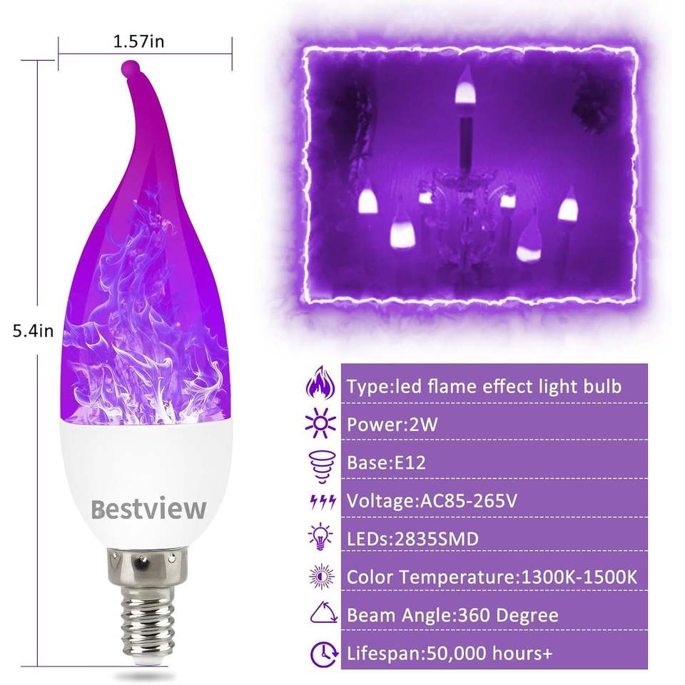 Ampoules LED à effet de flamme intelligentes, 3 modes, base E12 pour lustre, effet de feu de bougie pour Halloween