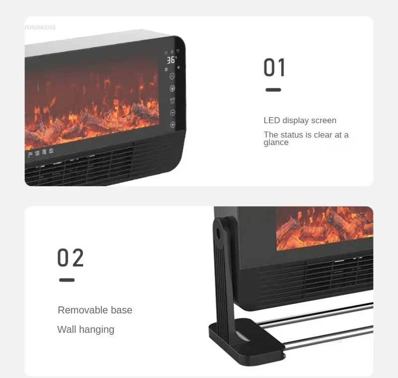 Lampes à flamme LED décoratives avec chauffage, ventilateur chaud, simulation de flamme, télécommande, cheminée électrique murale ou au sol