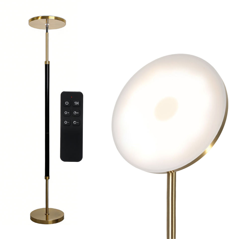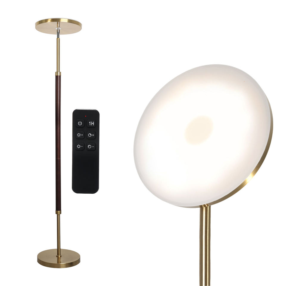 Lampe sur pied LED en bois massif, 30W 3000LM, télécommande, gradation progressive, changement de couleur, lampe sur pied de style mid-century