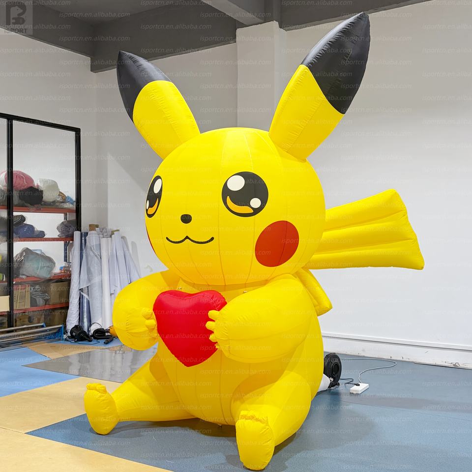 Pikachu géant gonflable LED avec accessoire cœur, décoration de dessin animé pour fête d'enfants/événement de la Saint-Valentin/présentation en magasin/campagne de marque