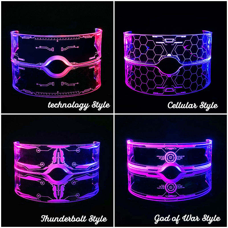 Lunettes LED Futuriste Glow Gear Lunettes de science-fiction à pulsation pour les fêtes d'Halloween électrisantes