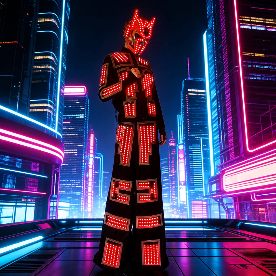 Costume de robot marcheur sur échasses lumineux à LED | Costume de Ranger Lumineux pour les Soirées d'Halloween des Hommes