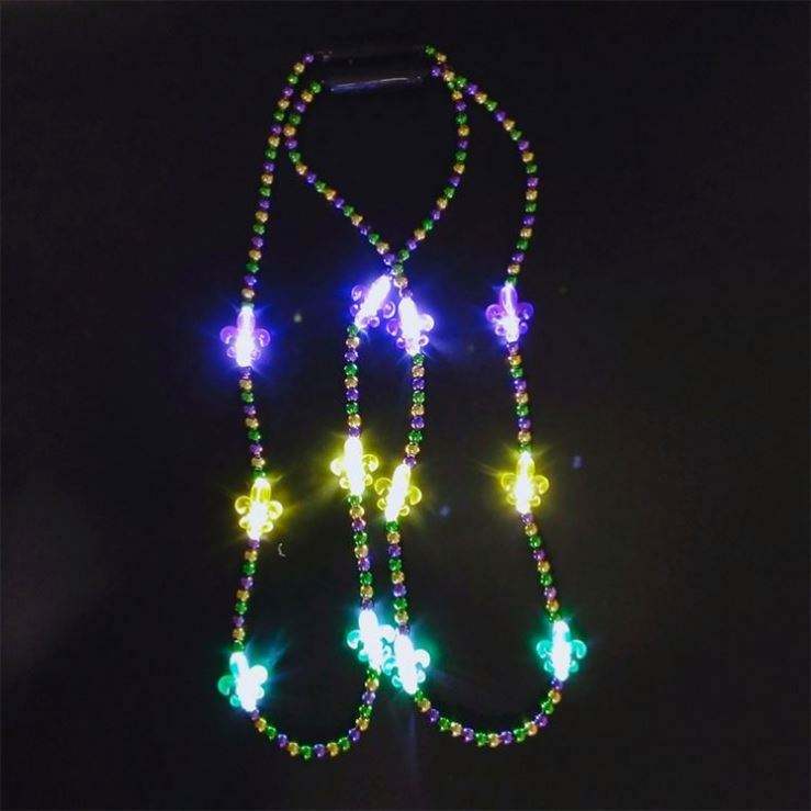 Collier en acrylique personnalisé avec perles LED lumineuses et perles clignotantes pour le Mardi Gras