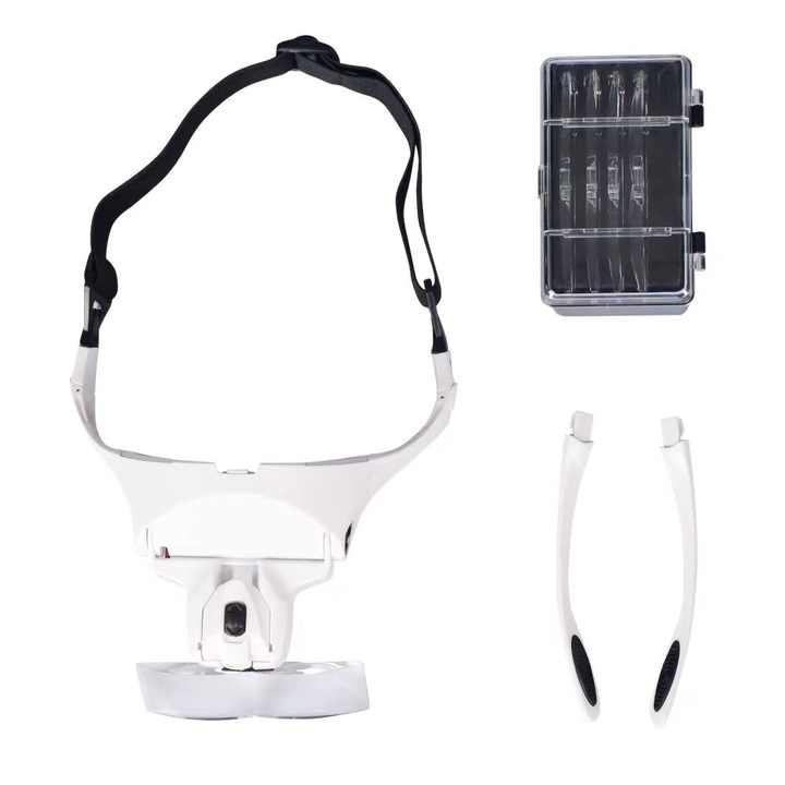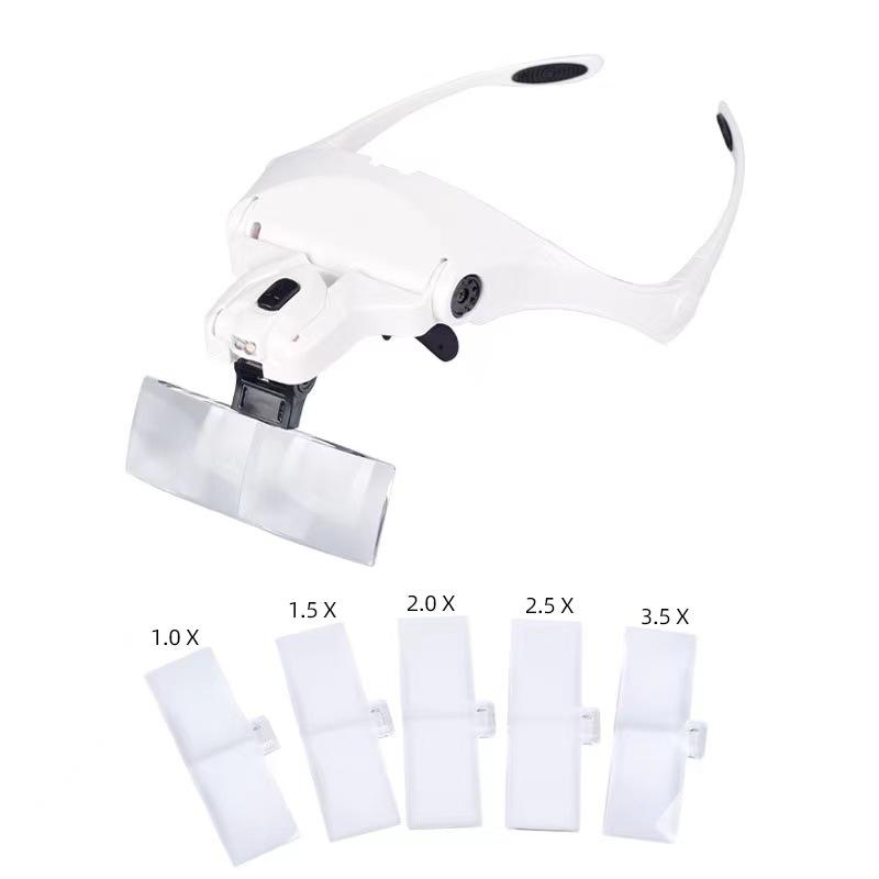 Loupe de tête LED Bandeau mains libres Lentilles de loupe avec lumières LED Loupe de bijoutier Lumière Bandeau verre de tatouage