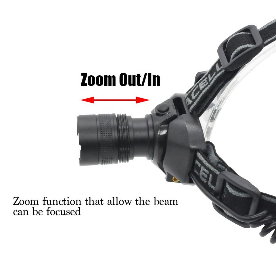 Lampe frontale à LED Lampe frontale zoomable Lampe frontale à lanterne Lampe frontale réglable à haute luminosité Noir