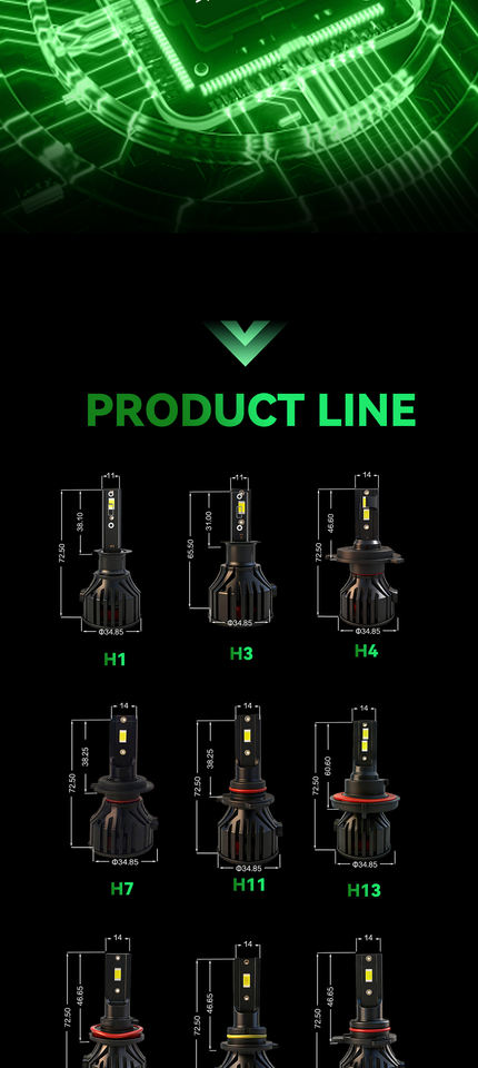 # H1, H3, H4, H7, montre H11, H13, 9005, 9006, 9007, 9012