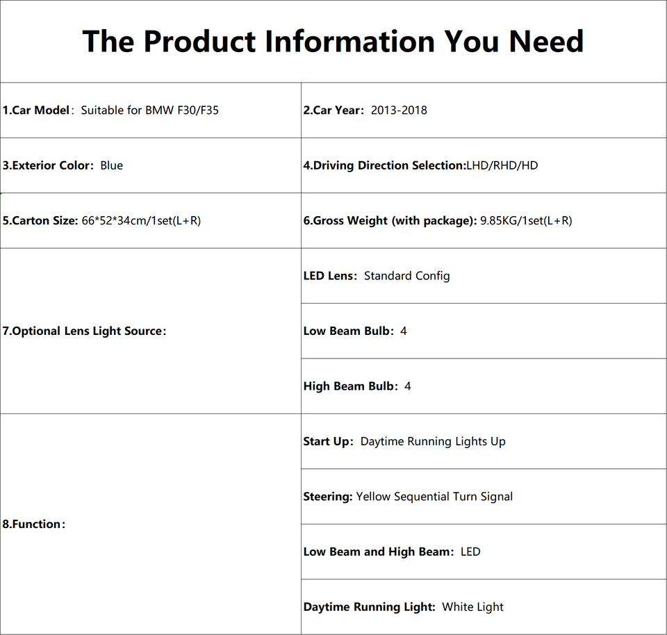 Modification des phares à LED compatible avec les BMW Série 3 F30 F35 2013-2018 6ème génération, phare et lentille de projecteur DRL