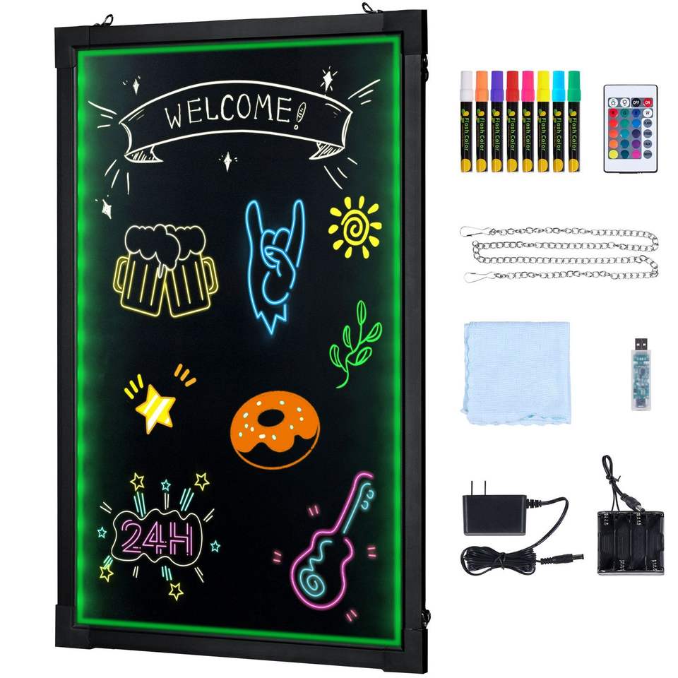 Tableau d'affichage lumineux LED effaçable 16"x12" avec effet néon, panneau de menu, tableau de dessin, écriture de messages LED 8F