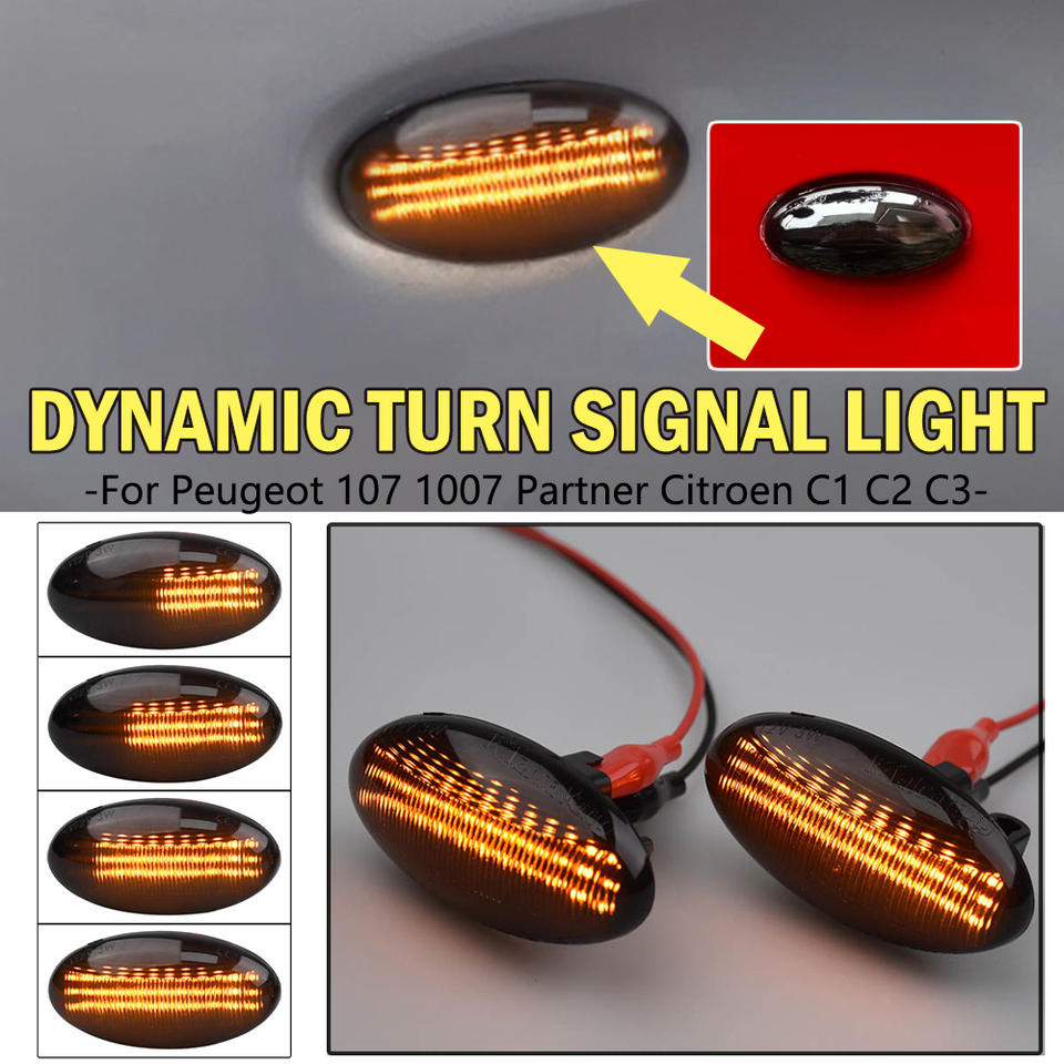 Feux de position latéraux pour Peugeot Citroën C1 C2 C3 C5 C6 107 206 307 407 607 1007 Berlingo Jumpy Dynamic Turn Signal Lamp